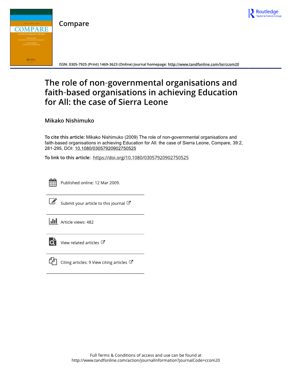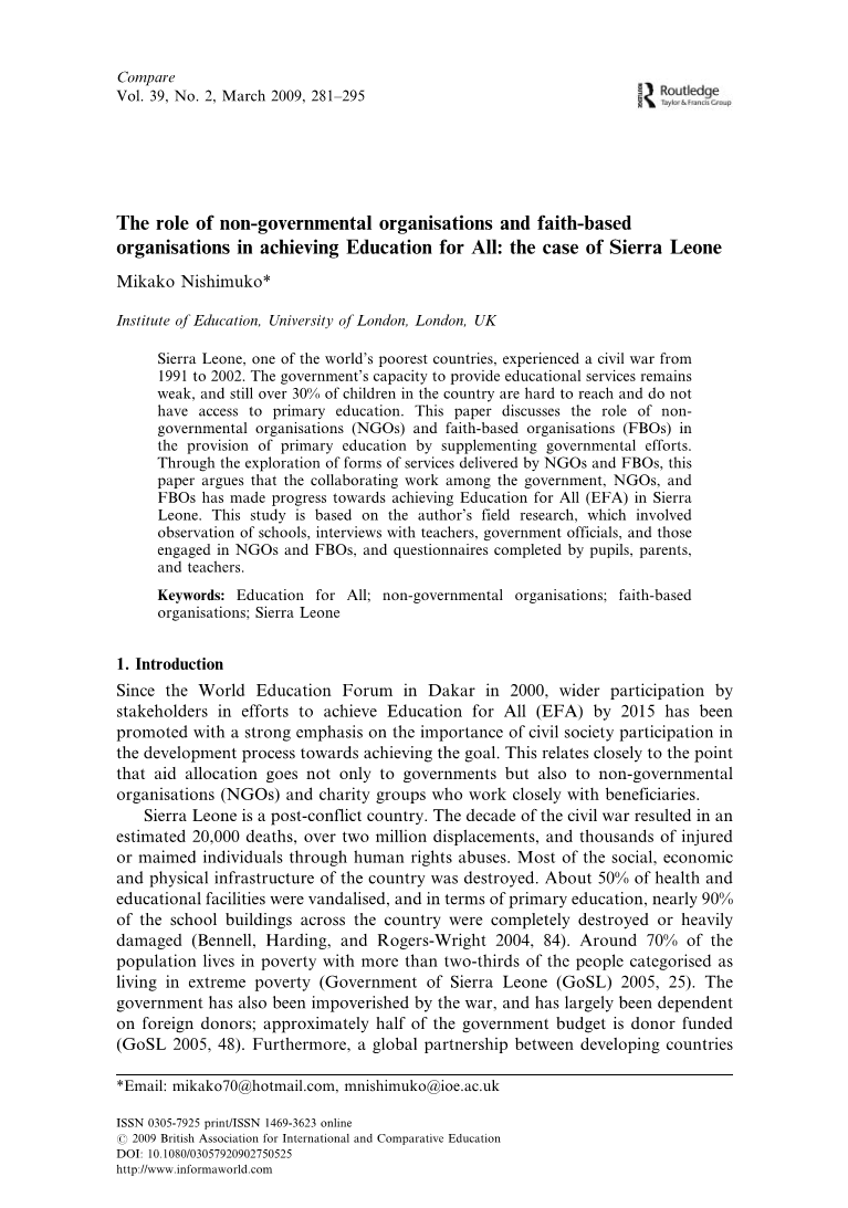 非政府组织和宗教组织在实现全民教育中的角色:以塞拉利昂为例