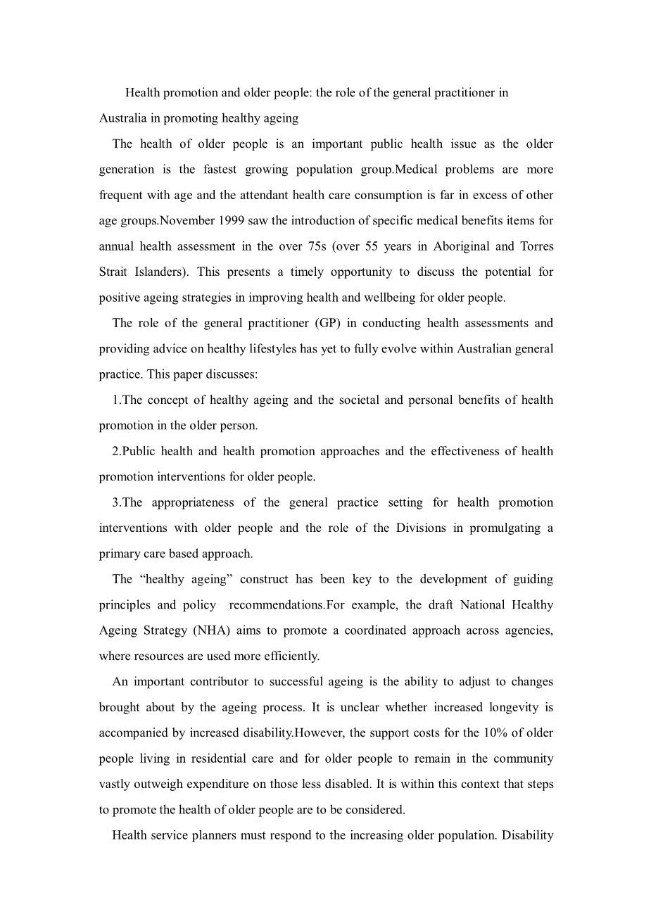 盐城市大丰区家庭医生签约服务现状研究外文翻译资料 2022-02-13 18:23:50 英语原文共 6 页,剩余内容已隐藏,支付完成后下载完整资料 英语译文共 5 页,剩余内容已隐藏,支付完成后下载完整资料资料编号:[453528],资料为PDF文档或Word文档,PDF文档可免费转换为Word 原文和译文剩余内容已隐藏,您需要先支付 30元 才能查看原文和译文全部内容!立即支付 发小红书推广免费获取该资料资格。点击链接进入获取推广文案即可: Ai一键组稿 | 降AI率 | 降重复率 | 论文一键排版 PREVIOUS NEXT 您可能感兴趣的文章 云南大理州农村养老保障体系与白族土地使用权流转——以中国剑川县为例外文翻译资料 影响公众对城市家庭医生计划不满的因素:法尔斯省一项基于一般群的研究外文翻译资料 中国的长期护理保险政策试验:对准入的影响外文翻译资料 中国医疗服务供给侧“看病难”的供需原因分析外文翻译资料 印度农村老年保健的老年人健康信息技术框架:一项政策倡议外文翻译资料 慈善众筹的社会筹款机制外文翻译资料 采用农业保险的决定因素:来自巴西圣保罗州农民的证据外文翻译资料 社区护理的现状及对策研究外文翻译资料 新加坡:社会发展,住房和中央公积金基金外文翻译资料 美利坚合众国的关爱老社区和社会包容外文翻译资料