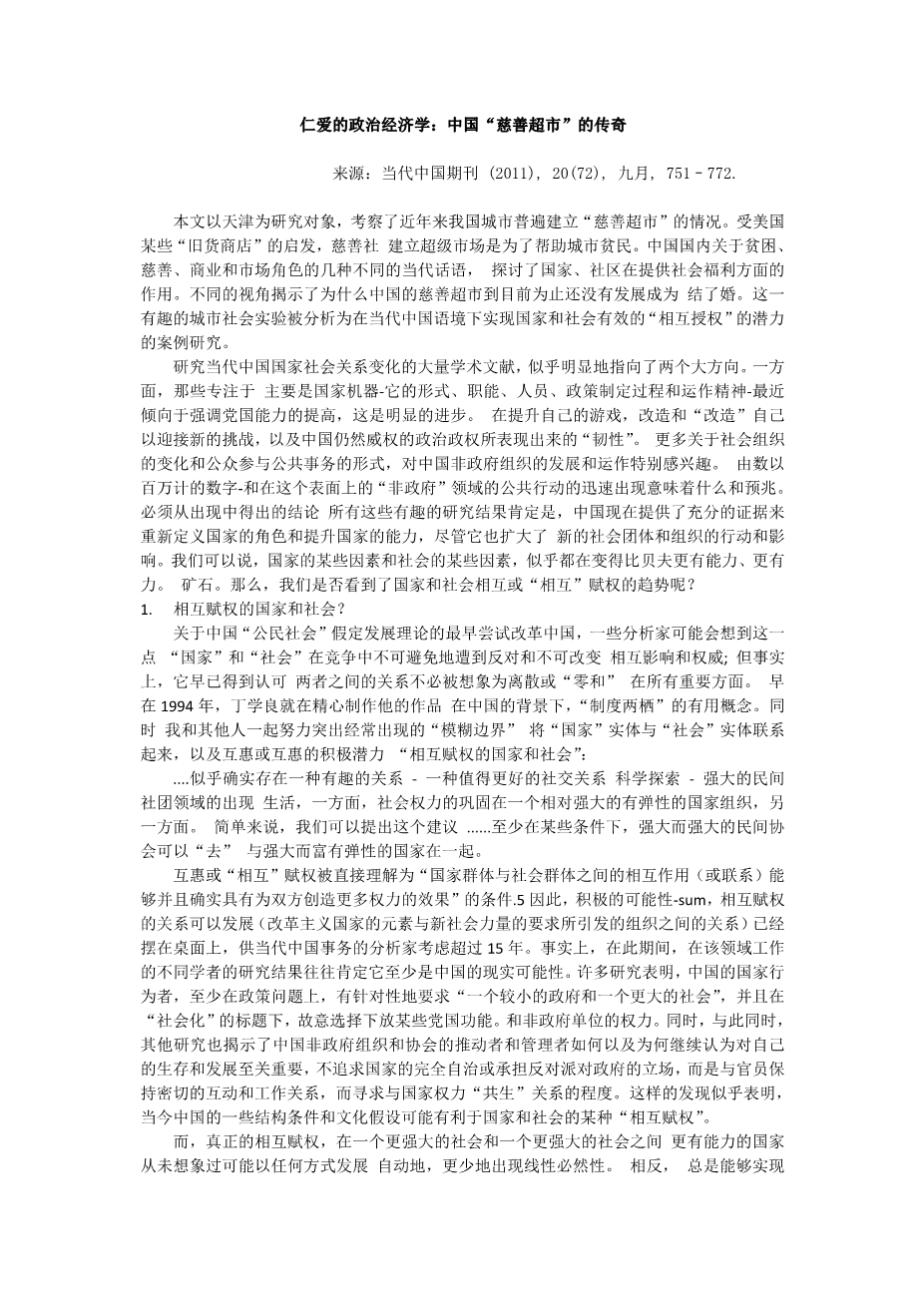 The Political Economy of Compassion: Chinarsquo;s lsquo;charity supermarketrsquo; saga