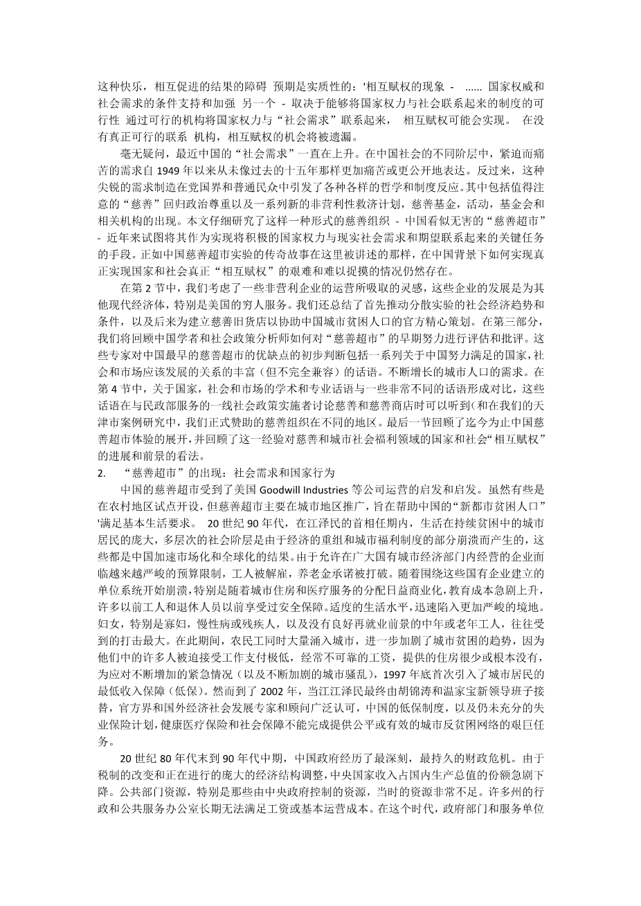 With a focus on Tianjin, this article examines the recent widespread establishment of lsquo;charity supermarketsrsquo; in Chinarsquo;s cities. Inspired by the example of certain lsquo;thrift shopsrsquo; in the US, charity supermarkets were set up for the purpose of assisting the urban poor. Several contrasting contemporary discourses within China concerning poverty, charity, business, and the proper roles of the market, state, and community in the delivery of social welfare are explored. The differing perspectives revealed throw an interesting light on why Chinarsquo;s charity supermarkets have not, so far, developed as anticipated. This interesting urban social experiment is analyzed as a case study in the potential to achieve effective lsquo;mutual empowermentrsquo; of state and society in the contemporary Chinese context.