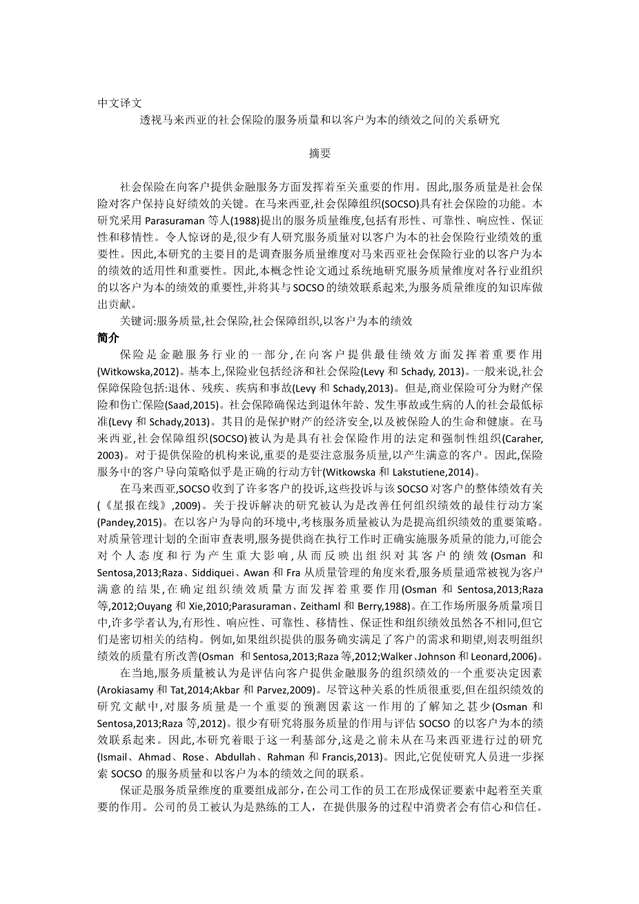 Insurance is a part of the financial service industries and plays an important role in delivering best performance to the customer (Witkowska, 2012). Basically, insurance industry consists of economic and social insurance (Levy amp; Schady, 2013). In general form, social security insurance includes: retirement, disability, sickness and accident (Levy amp; Schady, 2013). However, business insurance can be divided into property and casualty (Saad, 2015). Social security ensures the social minimum for people who: have reached retirement age, have had an accident or become sick (Levy amp; Schady, 2013). The objective is to protect economic security of property, and life and health of the insured. In Malaysia, Social Security Organisation (SOCSO) found to be the legal and mandatory organization that possessed the role of social insurance (Caraher, 2003). It is important for the institutions offering insurance coverage to take care of the quality of the performance to produce satisfied customer. And so the strategy of customer orientation in the insurance service seems to be the right course of action (Witkowska amp; Lakstutiene, 2014).