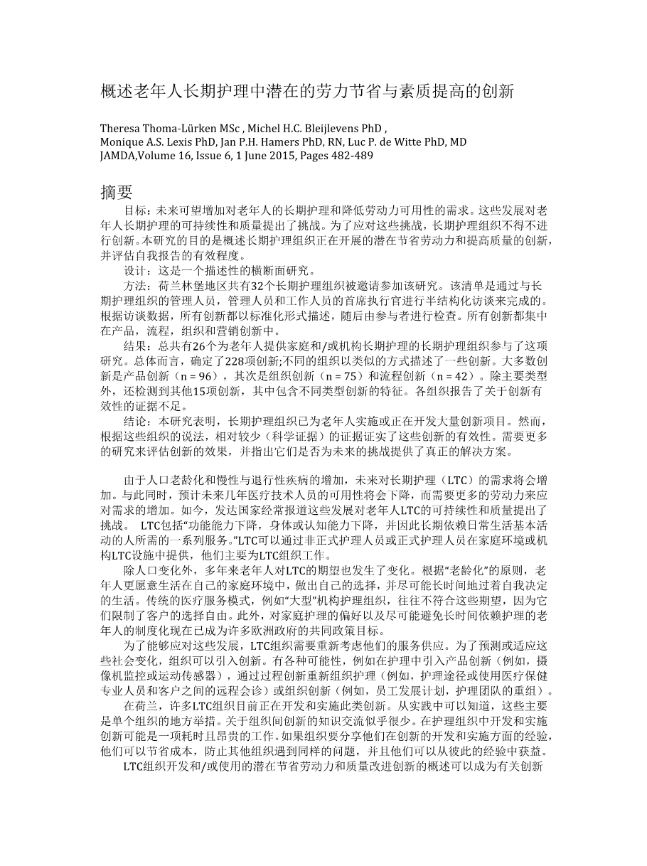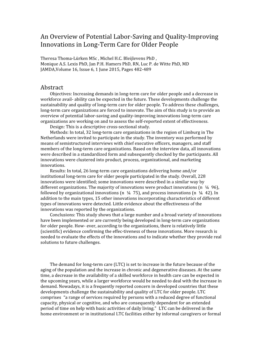 浅谈我国居家养老服务的发展与完善——以日本介护保险为借鉴对象外文翻译资料 2022-02-20 20:41:38 英语原文共 10 页,剩余内容已隐藏,支付完成后下载完整资料 英语译文共 11 页,剩余内容已隐藏,支付完成后下载完整资料资料编号:[449256],资料为PDF文档或Word文档,PDF文档可免费转换为Word 原文和译文剩余内容已隐藏,您需要先支付 30元 才能查看原文和译文全部内容!立即支付 发小红书推广免费获取该资料资格。点击链接进入获取推广文案即可: Ai一键组稿 | 降AI率 | 降重复率 | 论文一键排版 PREVIOUS NEXT 您可能感兴趣的文章 云南大理州农村养老保障体系与白族土地使用权流转——以中国剑川县为例外文翻译资料 影响公众对城市家庭医生计划不满的因素:法尔斯省一项基于一般群的研究外文翻译资料 中国的长期护理保险政策试验:对准入的影响外文翻译资料 中国医疗服务供给侧“看病难”的供需原因分析外文翻译资料 印度农村老年保健的老年人健康信息技术框架:一项政策倡议外文翻译资料 慈善众筹的社会筹款机制外文翻译资料 采用农业保险的决定因素:来自巴西圣保罗州农民的证据外文翻译资料 社区护理的现状及对策研究外文翻译资料 新加坡:社会发展,住房和中央公积金基金外文翻译资料 美利坚合众国的关爱老社区和社会包容外文翻译资料