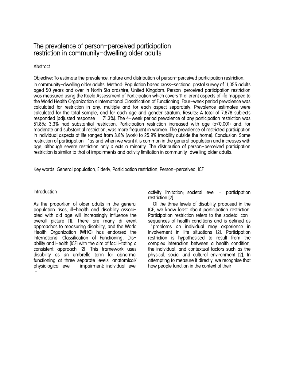 关键词:普通人群,老年人,参与限制,人感知,ICF