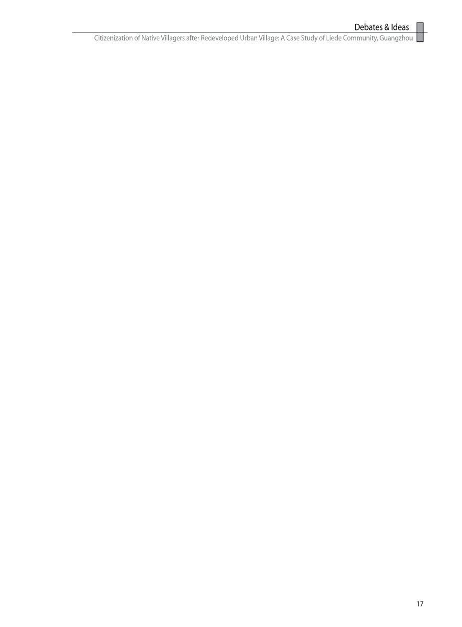 摘要:基于来自深入访谈、参与式观察、文献研究等定性资料,本文旨在深入研究广东省第一个城中村改造的社区----列德社区村民市民化的模式与过程。通过对村民市民化水平的调查,考察了再开发项目对村民市民化的影响。我们的发现表明,改造项目显著改善了村民的生活条件和收入水平。多元化的社会群体的混合居住模式,增加了他们融入城市社会生活的机会。然而,因为村民们保持着他们传统的思维模式、行为习惯和生活方式,市民化进程在土地所有权、管理模式、生活方式和公民身份方面几乎没有取得什么进展。因此,列德社区改造项目被证明是一个“被动公民化”的过程,即村民被动地接受改造带来的社会经济利益,仍然是孤立于城市的社会经济和文化体系。最后,本文从理论和实践的角度提出了促进公民市民化的政策建议
