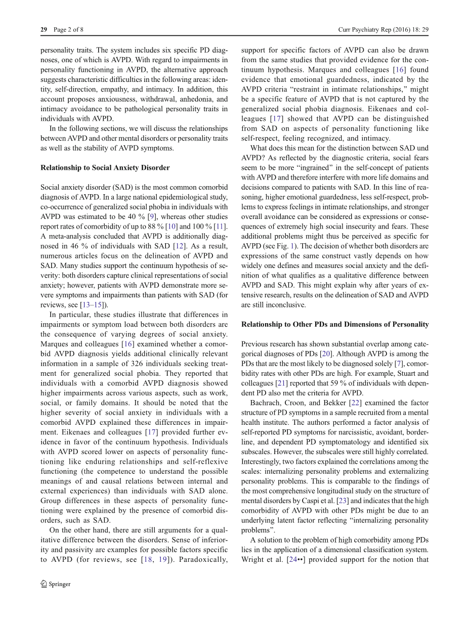 在下面的部分中,我们将讨论AVPD与其他精神障碍或人格特征之间的关系以及AVPD症状的稳定性。
