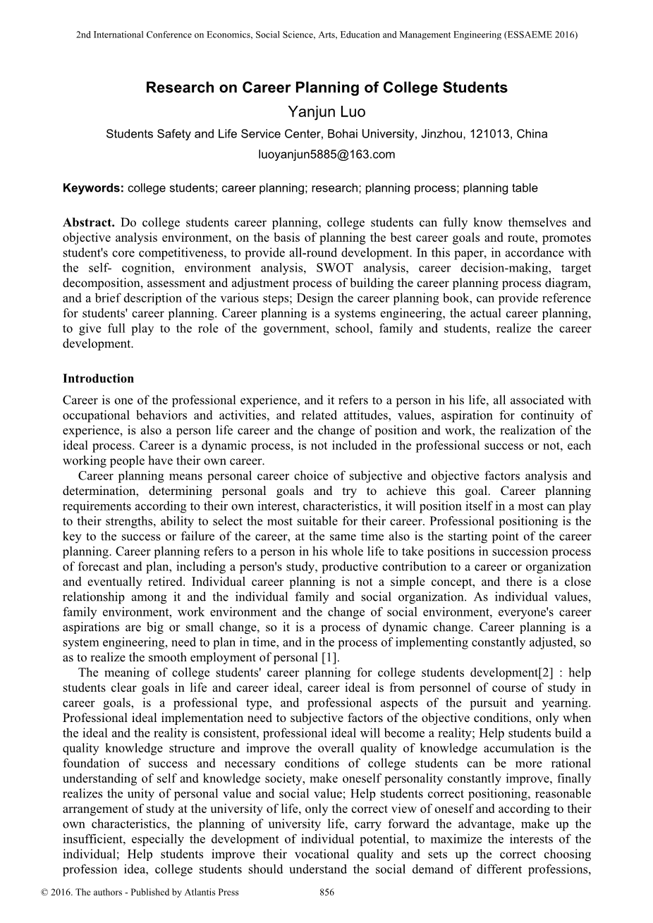 关键词:大学生;职业规划;研究;计划过程;策划表