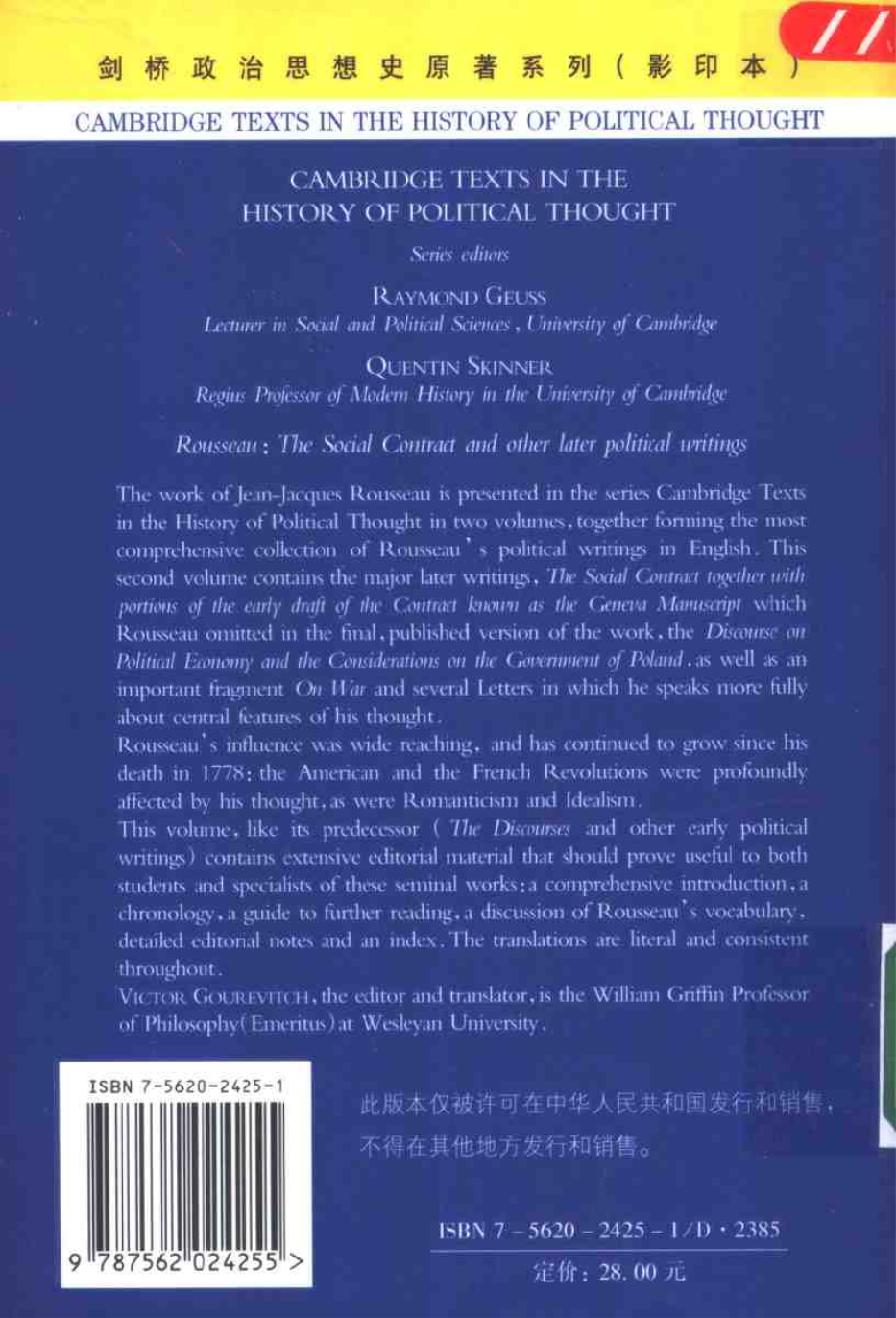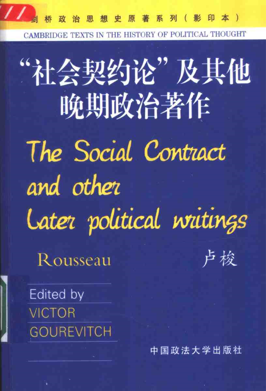 “社会契约论”及其他 晚期政治著作外文翻译资料