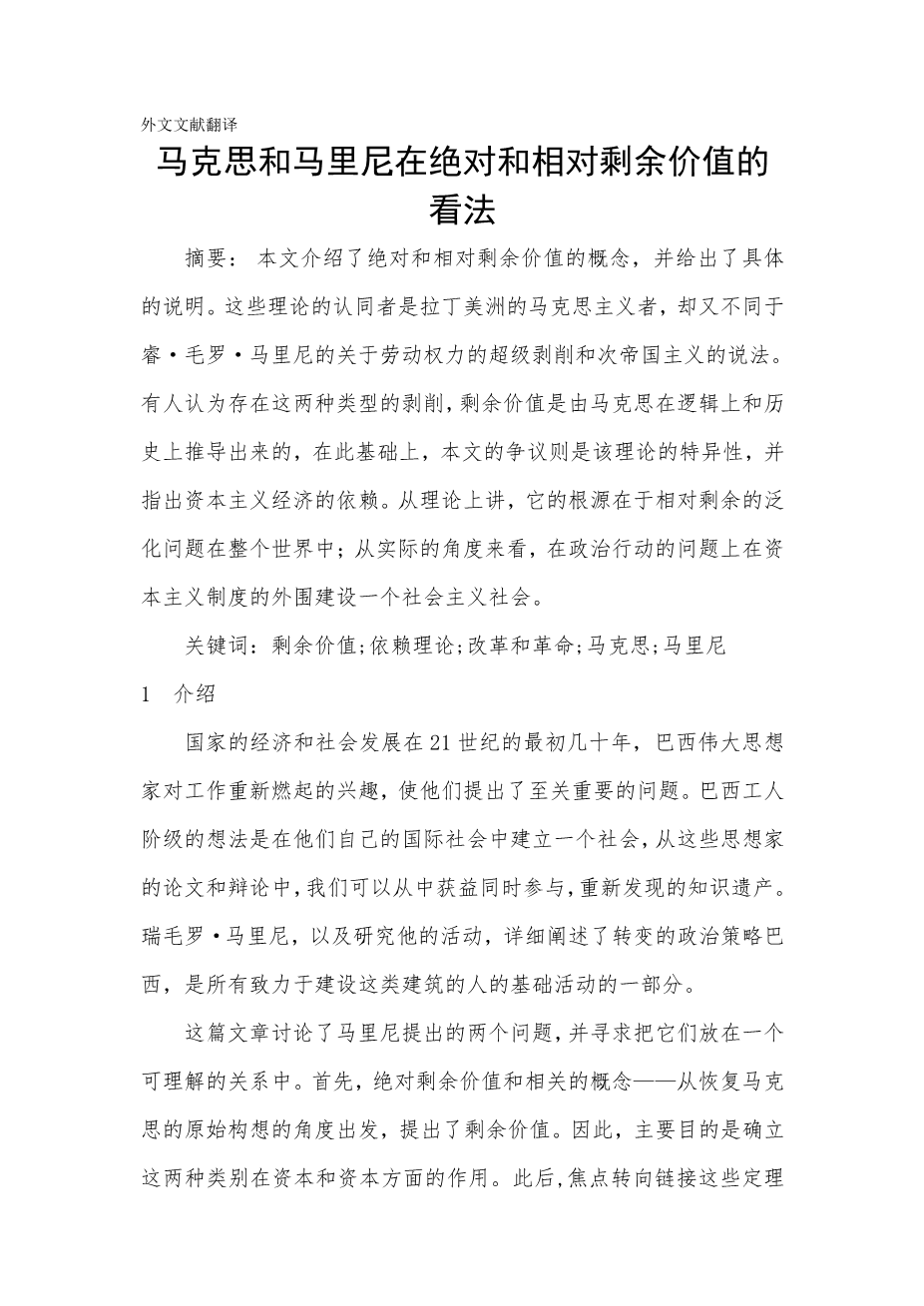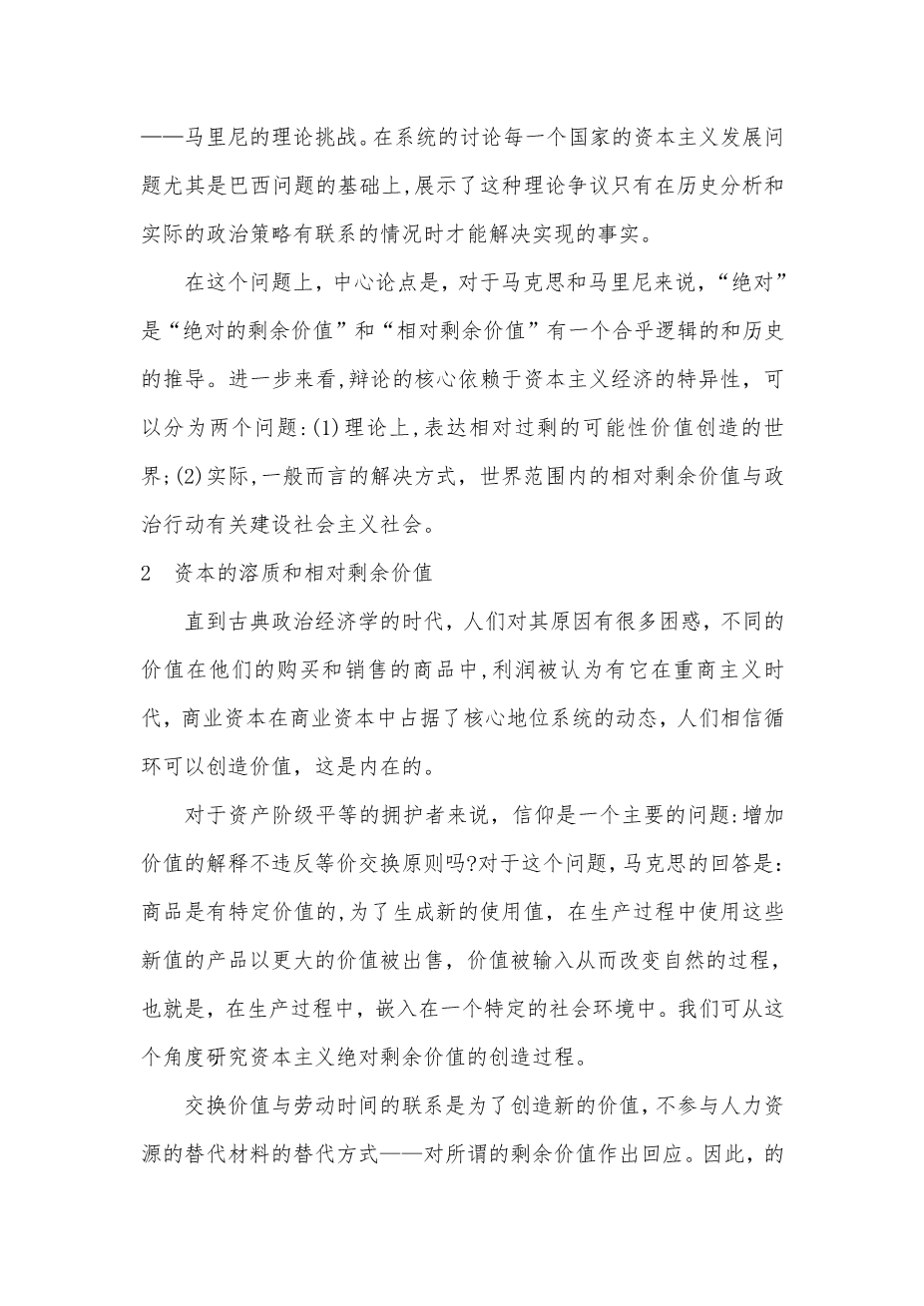 马克思和马里尼在绝对和相对剩余价值的 看法外文翻译资料