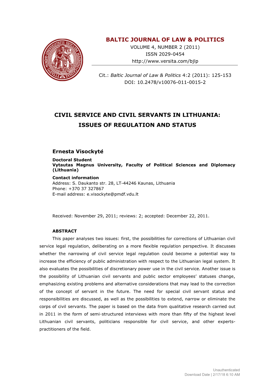 因此,本文的总体目标是在立陶宛提出公务员法律规制和公务员制度变迁的可能性。