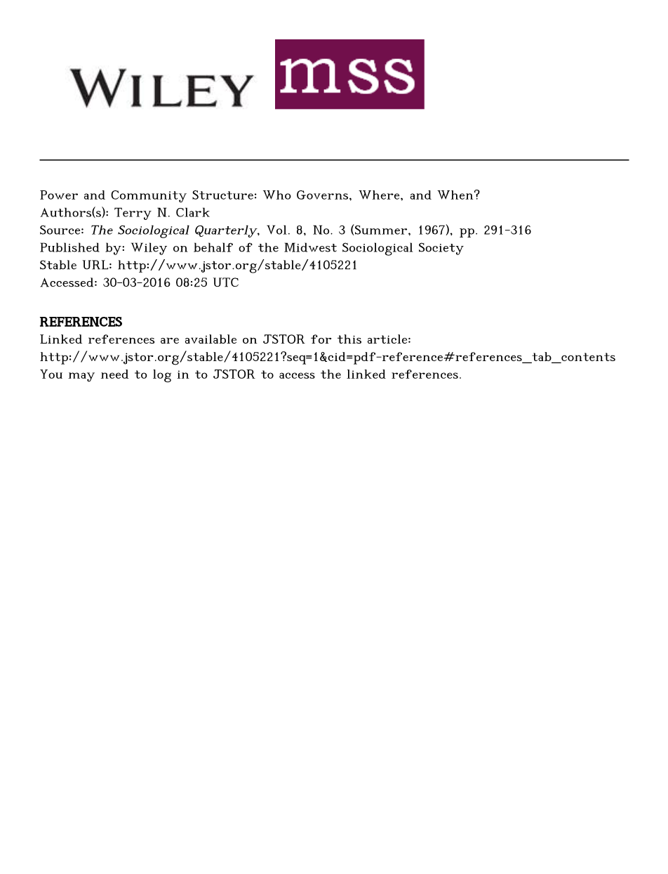 本文的核心论点是以前对社区权力结构的研究始于问错问题。正如达尔所主张的,首先要问的是,是否有权力精英是一个重要的问题,在问问之前必须满足地回答,他跟随构成权力精英的亨特。尽管如此,正如在几乎所有学生的着作中所暗示的那样,在不同的社会条件下,不同类型的权力结构有不同类型的权力结构。承认这个问题可以有各种合理的答案,“谁治理?”取决于所研究的社区,这表明以较不绝对的术语重新表述问题。一个适当的分析必须回答一系列三个问题:谁治理?——社区权力结构的性质如何;哪里?——什么样的社区;什么时候?在什么条件下。以这种方式表示问题侧重于区分一个社区与下一个社区的变量,这些变量倾向于与某种或某种类型的权力结构相关联。