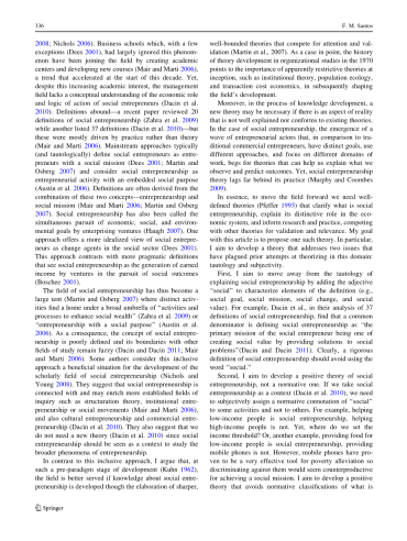 与这种包容的方法相反,我认为,在这种发展的前范式阶段(库恩1962年),如果有关公益创业的知识能够通过更清晰的阐述和争取关注和认可的有条理的理论得到发展,这个领域将会得到更好的服务。有界理论竞争注意力和验证(Martin et al.2007)。作为一个恰当的例子,1970年组织研究中理论发展的历史指出,制度理论、人口生态学和交易成本经济学等一开始就具有明显限制性的理论对后来形成该领域发展的重要性。