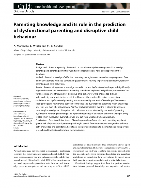 信心是相互联系的,也不是它们如何结合起来影响儿童的发展和行为(Sanders&Morawska 2005)。本研究的目的是通过考虑它们如何相互影响父母能力和破坏性儿童行为,将现有研究扩展到育儿知识和育儿信心之间的关联。