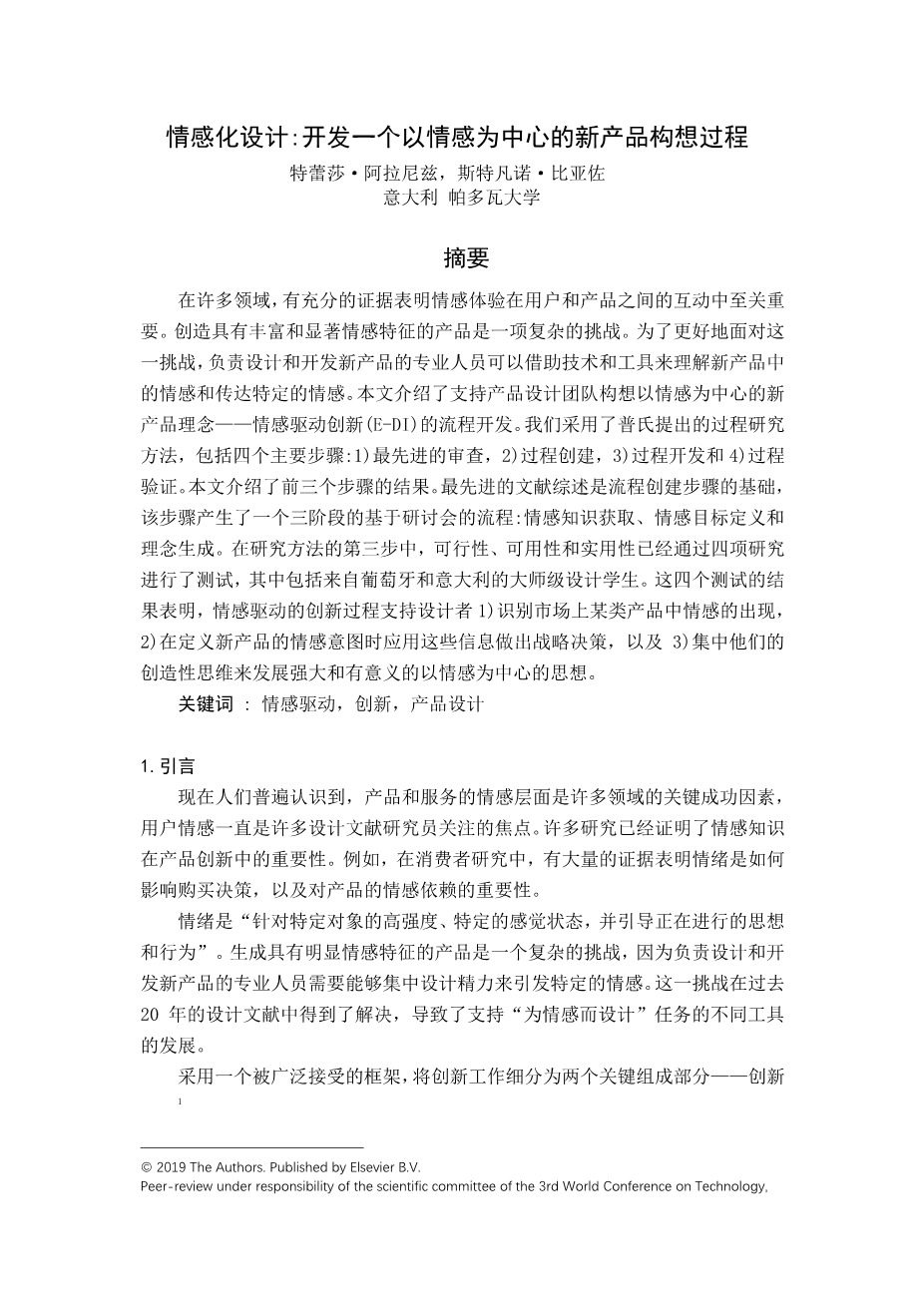 情感化设计:开发一个以情感为中心的新产品构想过程外文翻译资料 2022-08-09 16:46:08 英语原文共 11 页,剩余内容已隐藏,支付完成后下载完整资料 英语译文共 15 页,剩余内容已隐藏,支付完成后下载完整资料 资料编号:[238804],资料为PDF文档或Word文档,PDF文档可免费转换为Word 原文和译文剩余内容已隐藏,您需要先支付 30元 才能查看原文和译文全部内容!立即支付 发小红书推广免费获取该资料资格。点击链接进入获取推广文案即可: Ai一键组稿 | 降AI率 | 降重复率 | 论文一键排版 PREVIOUS NEXT 您可能感兴趣的文章 烟气分析仪外文翻译资料 英国的数据新闻:形式和内容的初步分析外文翻译资料 基于情感体验的中国电子游戏设计创新外文翻译资料 澳大利亚在医疗.上使用的设置口译员和法医体检:医药和语 言学之间的关系外文翻译资料 汉代漆器设计美学外文翻译资料 医学教育,PDAS和智能手机:欢迎来到21世纪外文翻译资料 婴儿车在交通工具汽车上的动态表现和安全性分析外文翻译资料 通过融合Kano,QFD和FAST方法设计的多功能婴儿车外文翻译资料 儿童手推车的艺术状态: 儿童手推车中的设计概述和人体工程学的创新外文翻译资料 中国溺水救援人员的死亡率,2013年:225起新闻报道的救援事件回顾外文翻译资料