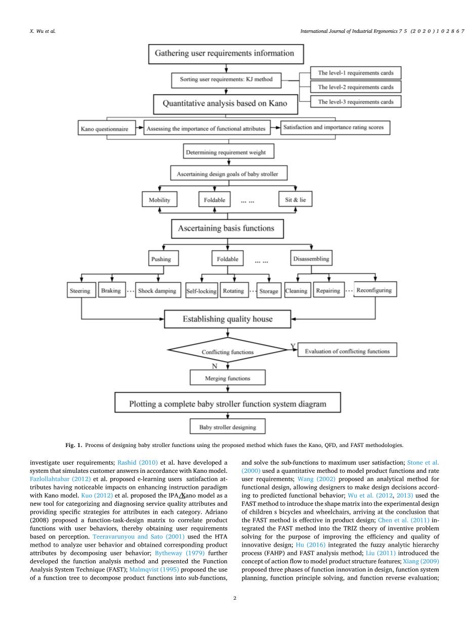 图1所示。使用该方法设计婴儿车的功能,融合了Kano,QFD和FAST方法