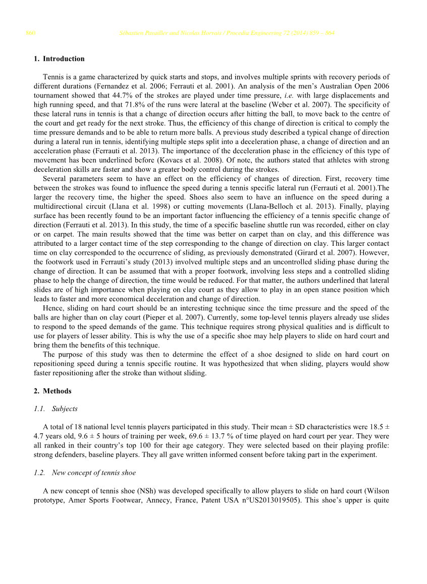 网球鞋(NSh)的新概念被开发专门用于允许球员在硬地球场上滑动(Wilson原型,Amer Sports Footwear,Annecy,France,Patent USA n°US2013019505)。这款鞋的鞋面很挺