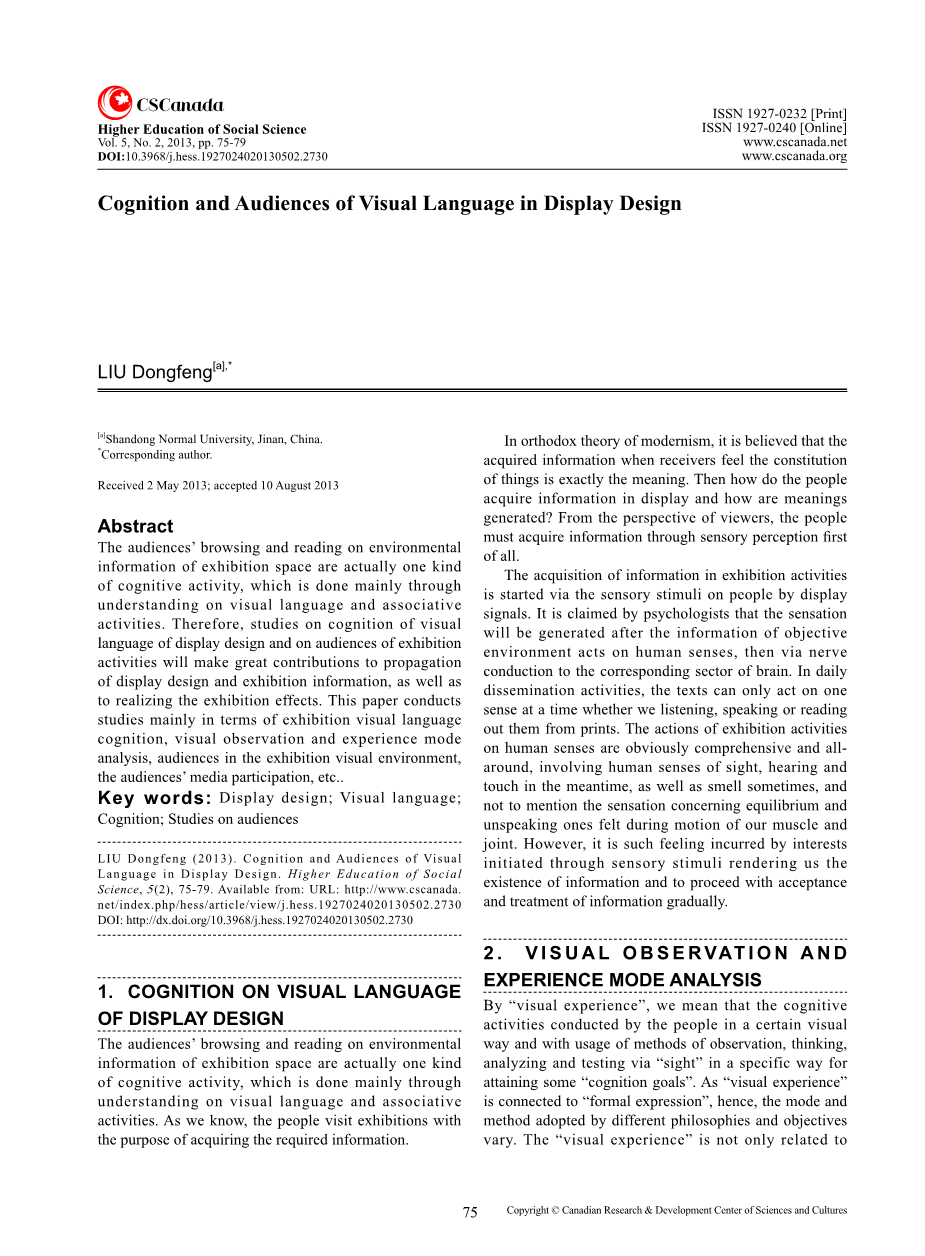 受众对展览空间环境信息的浏览和阅读实际上是一种认知活动,主要通过对视觉语言和联想活动的理解来完成。因此,对展示设计的视觉语言和展览活动受众的认知研究,将对展示设计和展览信息的传播以及实现展览效果做出重大贡献。本文主要从会展视觉语言认知、视觉观察和体验模式分析、展会视觉环境中的受众、受众的媒介参与等方面进行研究。