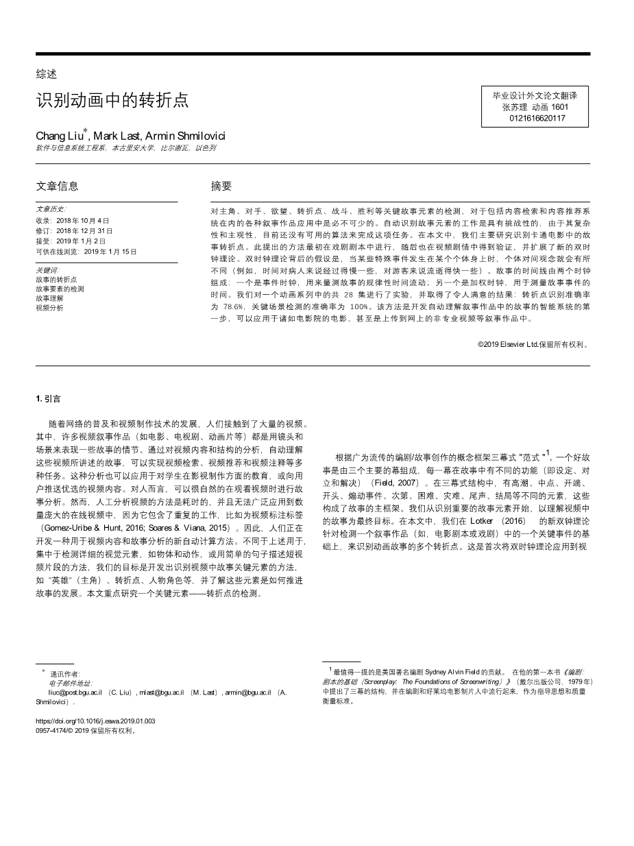 the roles of the characters. etc, and to understand how the eleshy; ments advance the story. This paper focuses on detection of one key ele口1ent - the turning points.