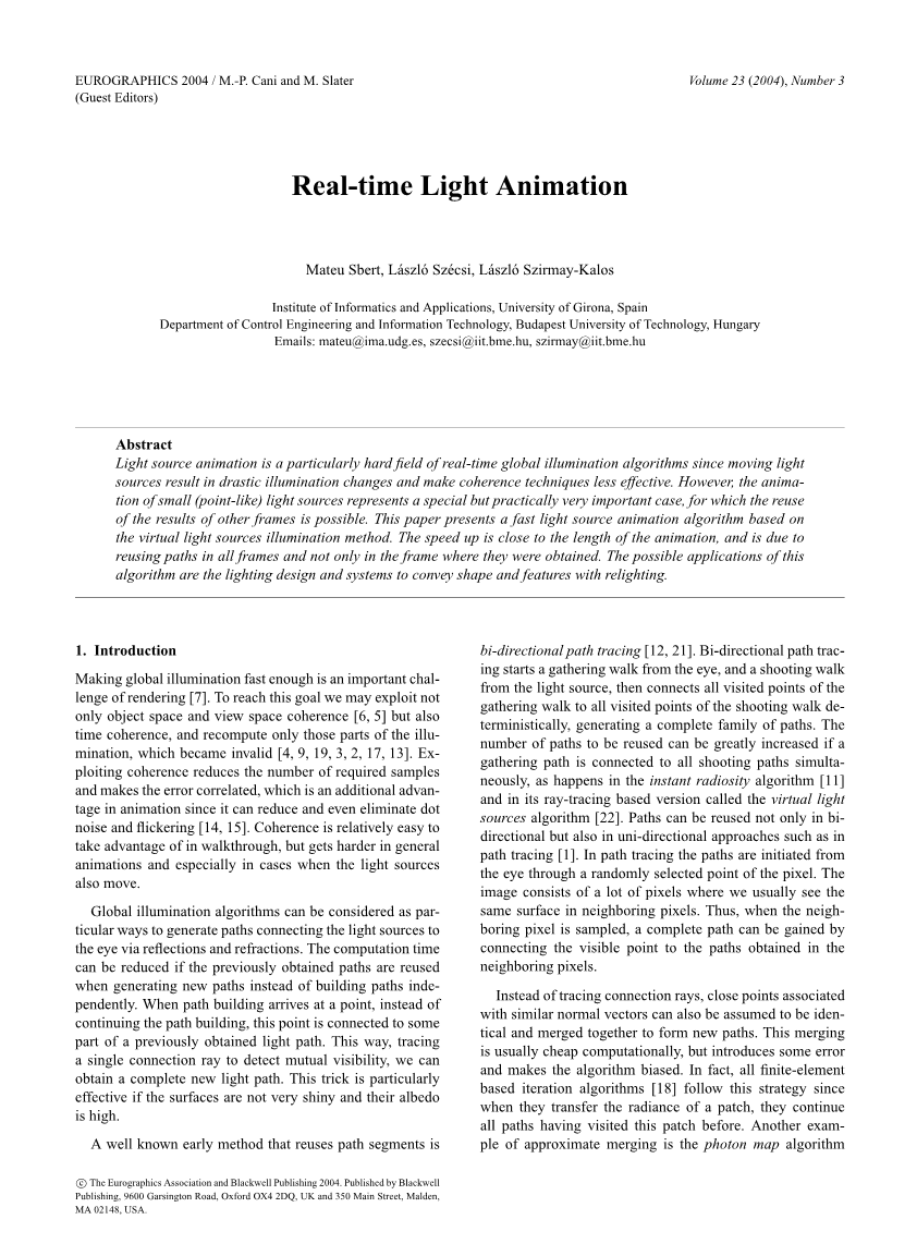 匈牙利布达佩斯理工大学控制工程与信息技术系电子邮件: mateu@ima.udg.es, szecsi@iit.bme.hu, szirmay@iit.bme.hu