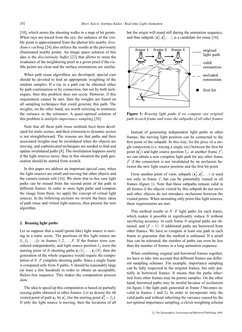 不仅在帧f中,而且可以在所有帧中重复使用(图1)。 请注意,如果此子路径访问的对象不移动且其他对象不在访问点之间引入遮挡,则这些子路径在所有帧中都保持有效。 当仅对点状光源进行动画制作时,这些要求才得以满足。