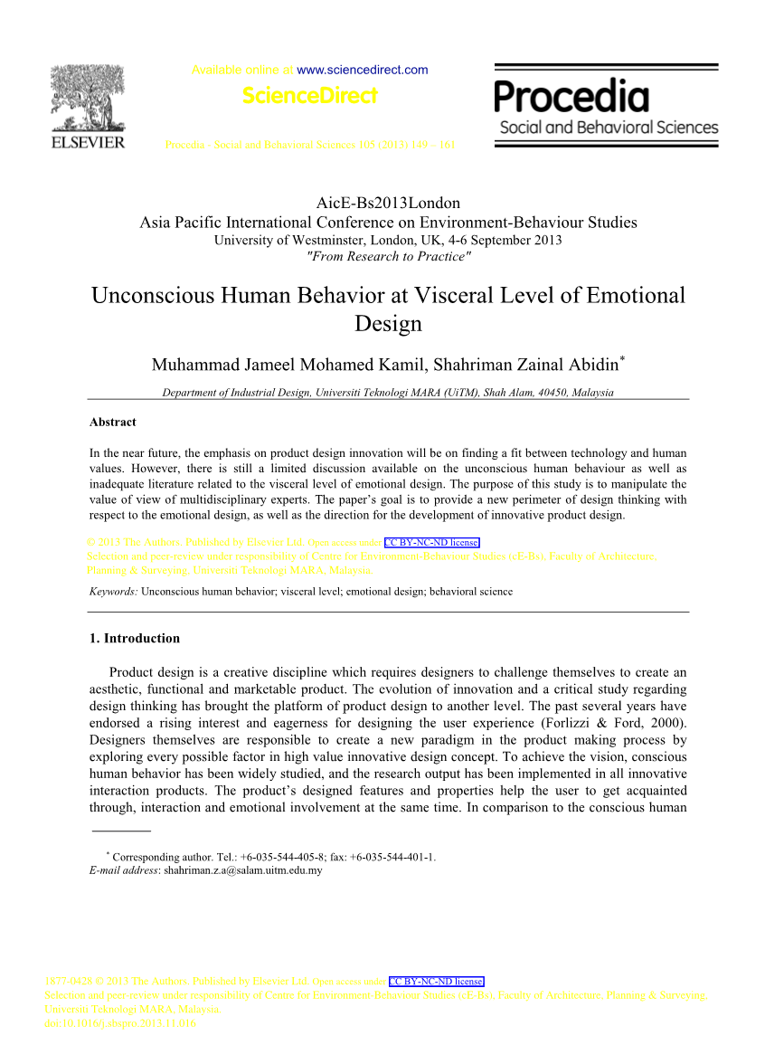 产品设计是一门创造性的学科,需要设计师挑战自我,创造一种美观的、实用的和市场化产品。创新的发展和设计思维的批判性研究将产品设计的平台推向了另一个层面。过去几年已经认可了对用户体验设计高涨的兴趣和渴望。设计师自己有责任在产品制作过程中创造新的范式,探索高价值创新设计理念的每一个可能因素。为了实现这一愿景,有意识的人类行为得到了广泛的研究,并且研究成果已在所有创新互动产品中得到实施。产品设计的外观和性能可以帮助用户在同一时间熟悉,互动和情感参与。与有意识的人类行为相比,无意识的人类行为一直难以辨认。 对后者的有限讨论导致设计师忽略了其潜在价值。想象一下,人们用钢笔书写并突然觉得没有想法。 白纸就在眼前,但他/她没有发现任何写下去的线索。在这种情况下,一个人受到压力并开始挠挠头部。不知不觉中,人们像平时面对无聊时一样摇动笔。在这种情况下,如果笔突然开始以美妙的色彩开始发光,因此发光的光线可能在娱乐人的同时减轻他们在整个写作期间的压力。上述例子解释了人类无意识行为的存在价值,这为本能层次的情感设计提供了巨大潜力。这项研究试图解释无意识的人类行为的价值,并旨在证明其在情感产品设计中的贡献。本文从设计者的角度对隐性用户的问题和需求进行解释。最后,本文讨论了设计师应如何开始将他们的设计思维界限扩展到交互式设计并探索替代设计概念。