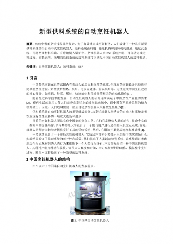 老年人智能烹饪机设计外文翻译资料 2021-12-10 17:39:13 英语原文共 11 页 英语原文共 9 页资料编号:[5897] 原文和译文剩余内容已隐藏,您需要先支付 30元 才能查看原文和译文全部内容!立即支付 发小红书推广免费获取该资料资格。点击链接进入获取推广文案即可: Ai一键组稿 | 降AI率 | 降重复率 | 论文一键排版 PREVIOUS NEXT 您可能感兴趣的文章 家庭入户智慧门设计外文翻译资料 仿生机器鱼的设计与制造外文翻译资料 老年人感性机器人实施的初始干预研究外文翻译资料 家用猫砂盆设计外文翻译资料 面向复杂沟通需求儿童的低成本社交机器人设计外文翻译资料 加强青少年和青少年临床预防服务的数字健康技术:可供性与挑战外文翻译资料 从生态革新角度阐释快递包装回收物流体系-以信阳师范大学为例外文翻译资料 智能汽车的智能控制系统外文翻译资料 汽车造型设计空间草图系统外文翻译资料 使用无人机空中影像对地震区的损伤程度评估外文翻译资料