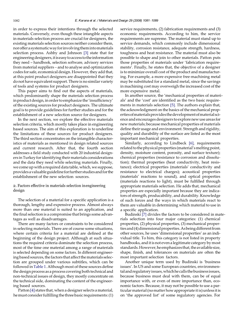但是对于预选过程,他们对其产品的材料做出初步决定的时候,通常他们不使用技术数据。所有与会者都强调,人们的文化基础和过去的经验是有效的产品和物质偏好。换句话说,人们可以认为一种