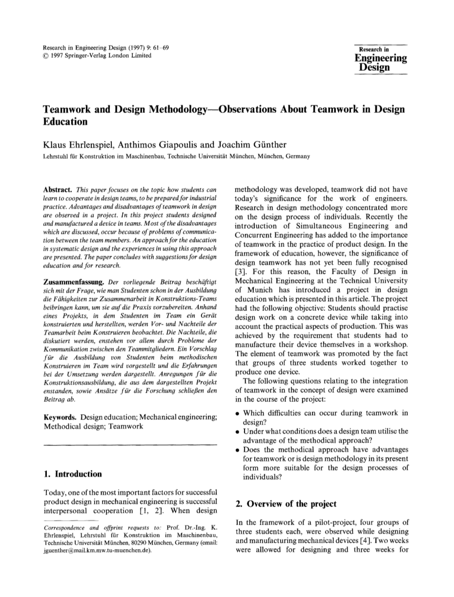 概述 本文重点研究的课题是学生怎样能学习设计团队合作,为工业实践做好准备。在一个项目中可以观察到设计团队的优缺点。在这个项目中学生分团队设计和制造一种装置。发生在团队成员讨论中的大多数的难题会被讨论。介绍系统设计的教育方法和使用这种方法的经验。本文包括设计教育的建议和科研调查。
