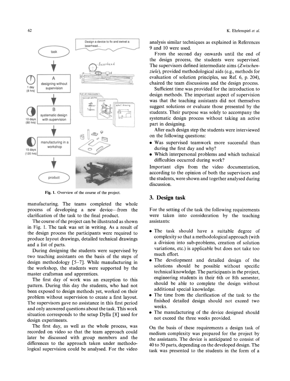 在一个试验项目的框架内,有四组学生,每组三人,观察他们设计和制造机械装置[4]。两周被用于设计,三周时间用于制造。该团队完成了整个开发一种新的装置的过程——从明确任务到最终产物。