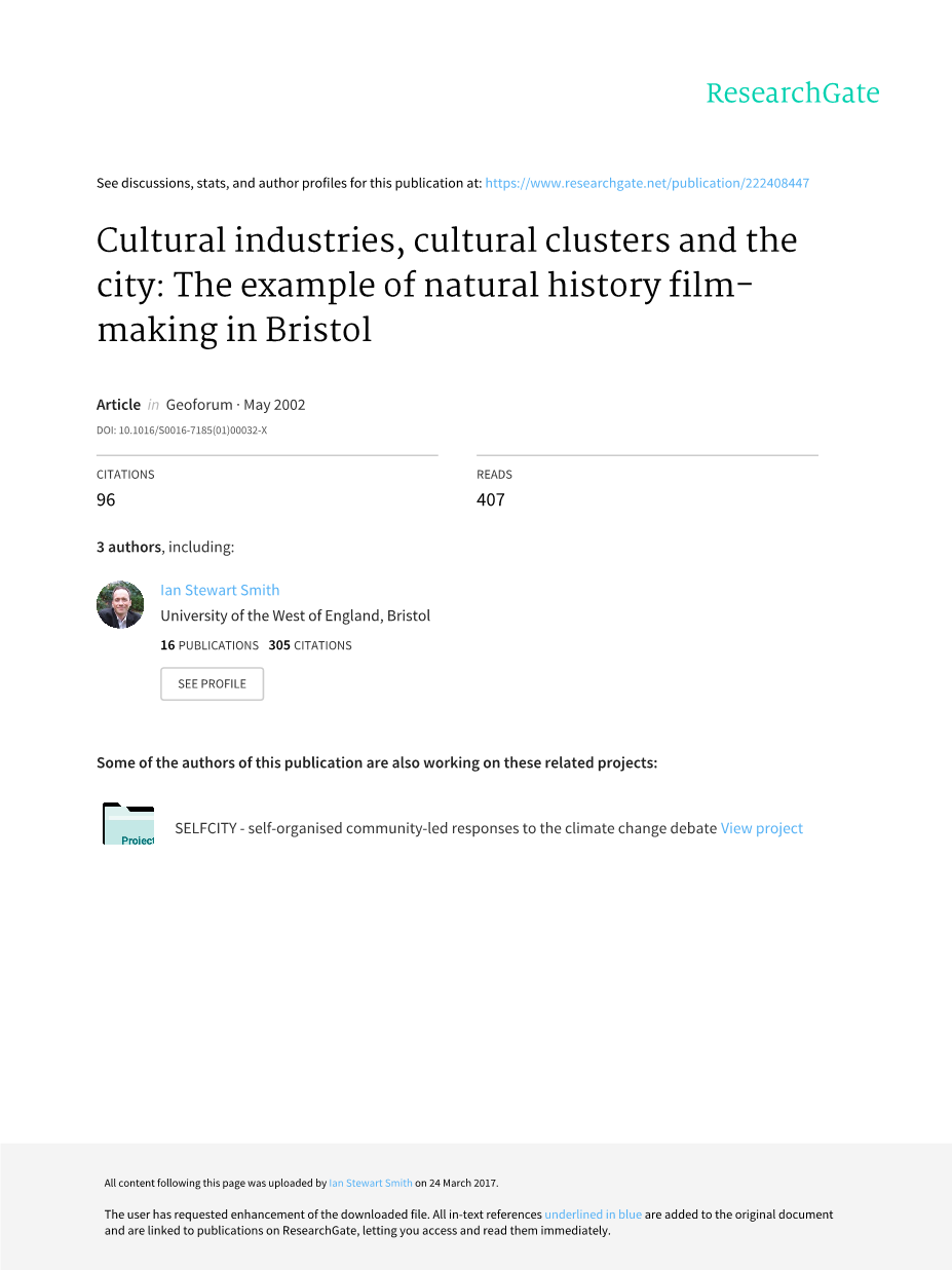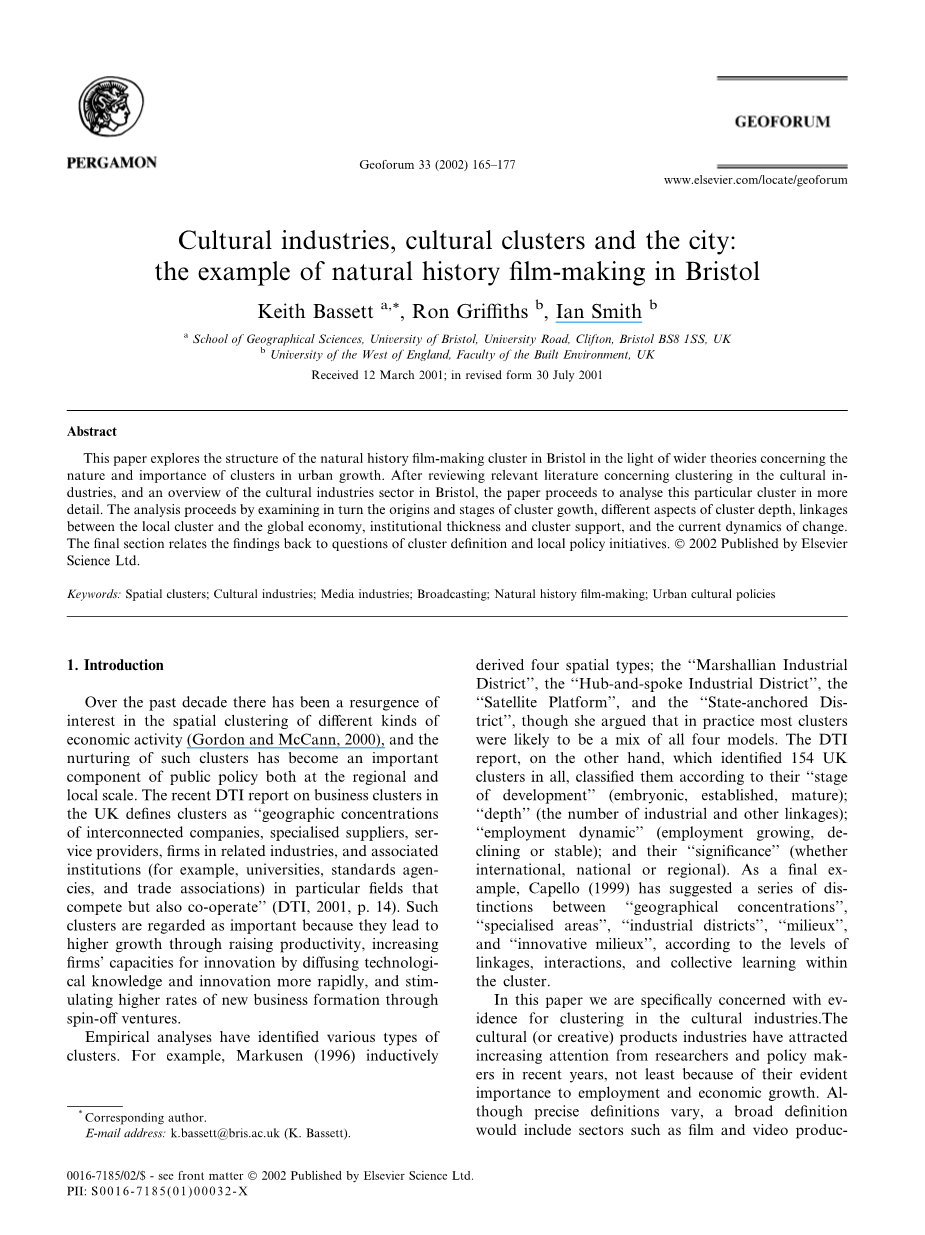 文化产业、文化集群与城市:以布里斯托尔自然史电影为例外文翻译资料