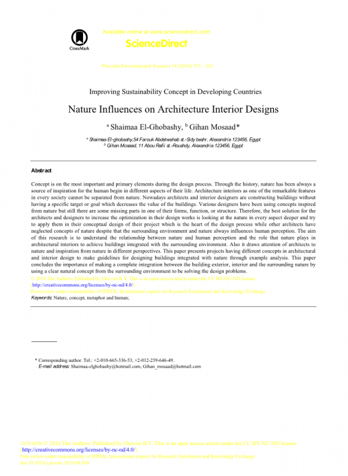 自然是周围环境中的一种情感因素,是处理日常影响人类周围事物的重要方面。人类总是与自然沟通;自从开始建造避难所并使用它们以来,自然被用作计划和设计中的重要和基本部分。人类注意到与自然沟通的优势;健康,减轻压力和疾病。植物和绿色空间可以帮助城市的完美和安全,改善居住环境中的社会关系和互动5。