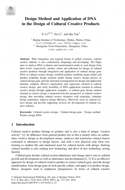 关 键 词 文化创意设计、文化设计基因、产品设计DNA