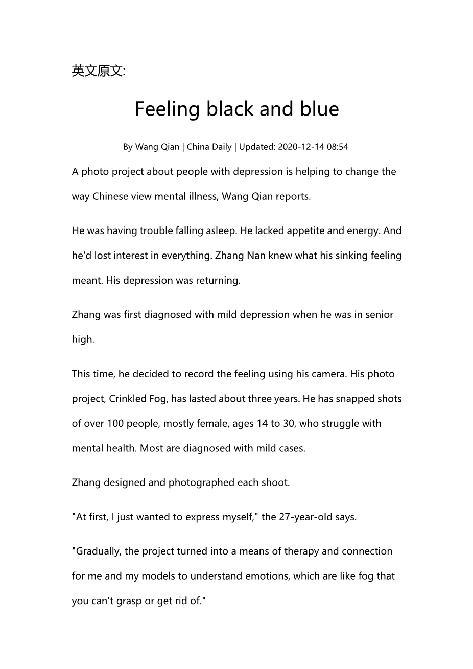 A photo project about people with depression is helping to change the way Chinese view mental illness, Wang Qian reports.
