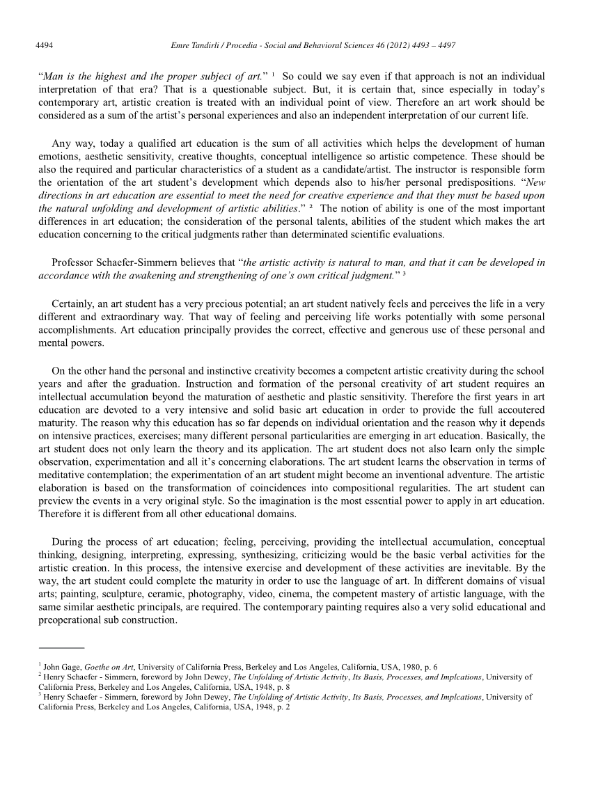 谢弗教授认为艺术活动对人类来说是自然的,它可以根据自己的批判判断的觉醒和加强而发展。