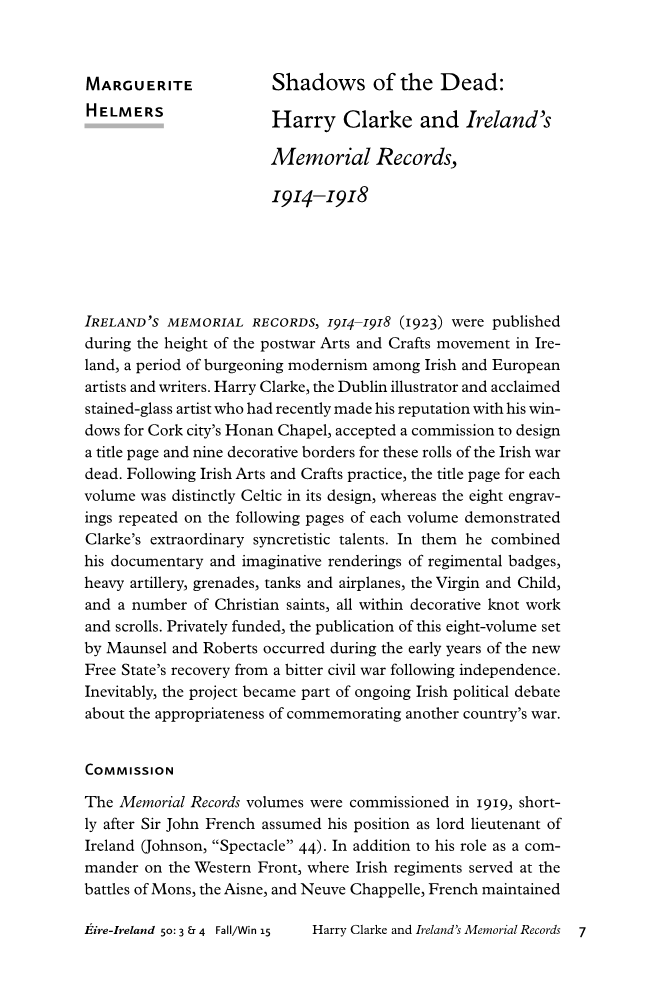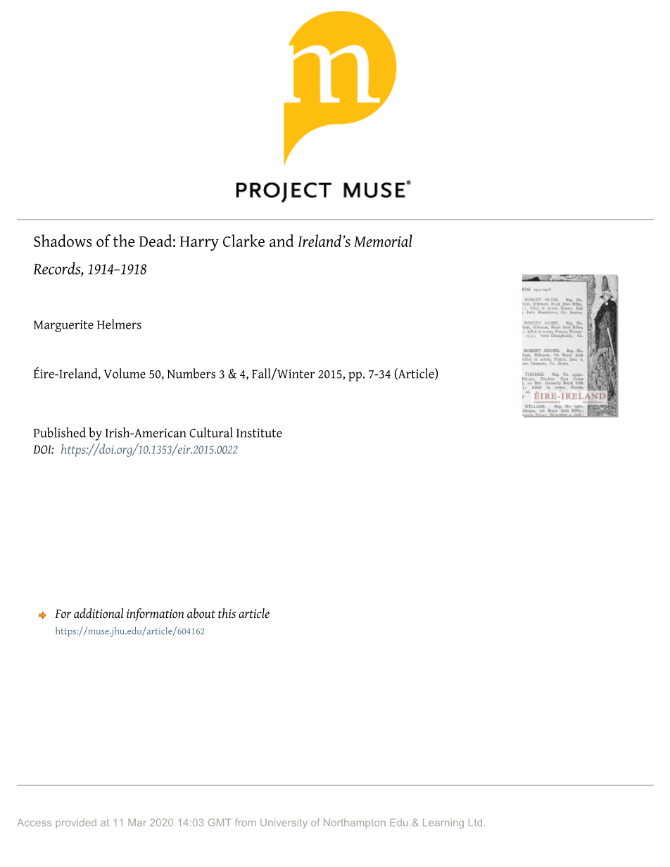 亡者的影子:哈里·克拉克与《爱尔兰纪念档案》(1914-1918)外文翻译资料