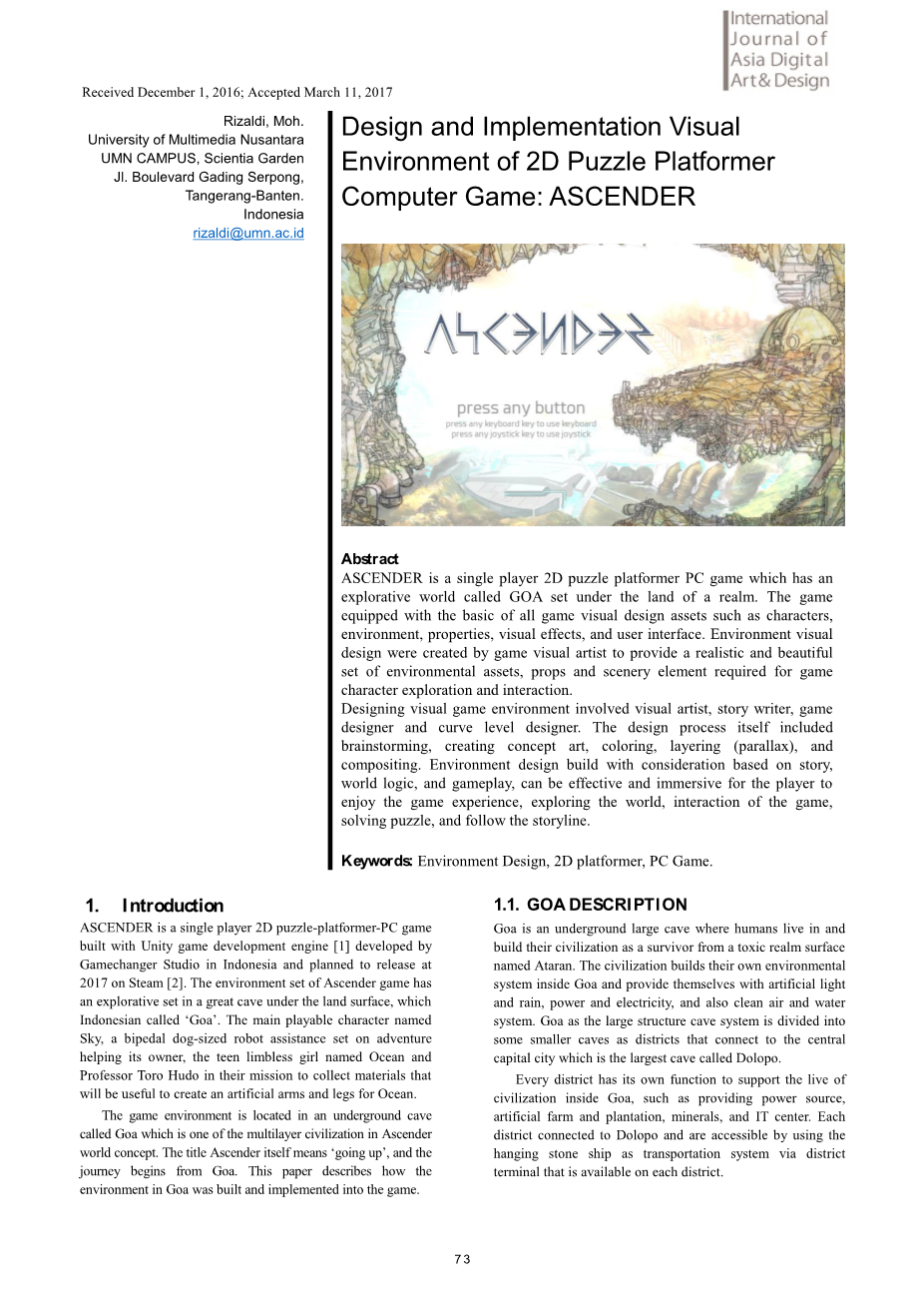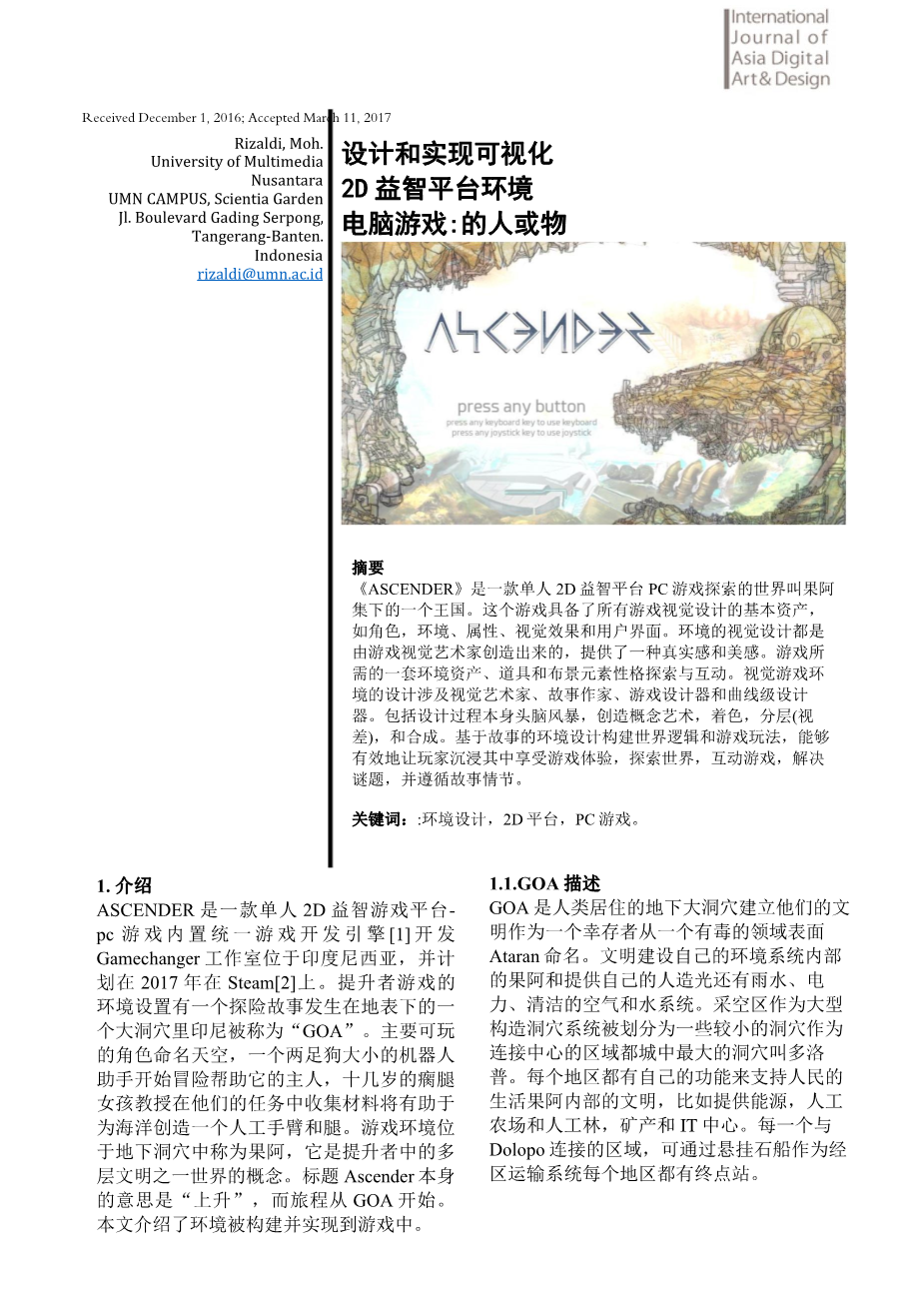 设计和实现可视化2D益智平台环境电脑游戏的人或物外文翻译资料 2023-03-01 11:27:21 英语原文共 6 页,剩余内容已隐藏,支付完成后下载完整资料 英语译文共 6 页,剩余内容已隐藏,支付完成后下载完整资料 资料编号:[18726],资料为PDF文档或Word文档,PDF文档可免费转换为Word 原文和译文剩余内容已隐藏,您需要先支付 30元 才能查看原文和译文全部内容!立即支付 发小红书推广免费获取该资料资格。点击链接进入获取推广文案即可: Ai一键组稿 | 降AI率 | 降重复率 | 论文一键排版 PREVIOUS NEXT 您可能感兴趣的文章 纪录片的真实:对纪录片美学的思考外文翻译资料 增强现实技术与应用综述外文翻译资料 纺织设计研究的艺术:创造性实践的教育方法外文翻译资料 基于山水与树木的水墨画模拟外文翻译资料 设计和实现可视化2D益智平台环境电脑游戏的人或物外文翻译资料 苏州画册:园林外文翻译资料 Nuri Bilge Ceylan和他的电影在土耳其媒体的介绍外文翻译资料 大卫·林奇的《穆赫兰道》和《内陆帝国》中的迷宫与幻象外文翻译资料 难民的角色和碎片化身份在散居电影人中的影响外文翻译资料 自然 简约—对室内设计现象分析外文翻译资料