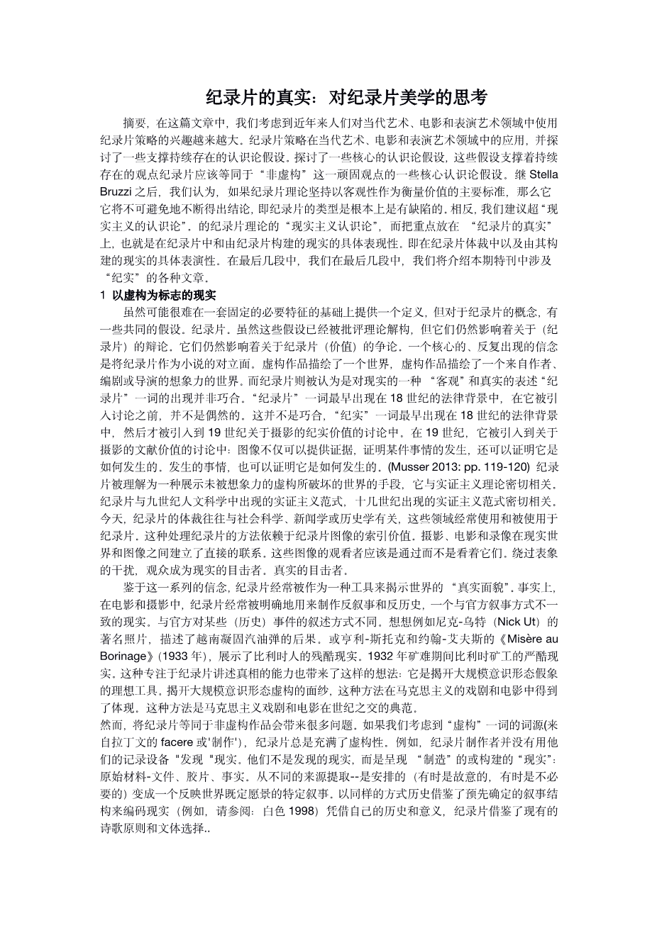 纪录片的真实:对纪录片美学的思考外文翻译资料 2023-03-30 09:32:57 英语原文共 2 页,剩余内容已隐藏,支付完成后下载完整资料 英语译文共 2 页,剩余内容已隐藏,支付完成后下载完整资料 资料编号:[587229],资料为PDF文档或Word文档,PDF文档可免费转换为Word 原文和译文剩余内容已隐藏,您需要先支付 30元 才能查看原文和译文全部内容!立即支付 发小红书推广免费获取该资料资格。点击链接进入获取推广文案即可: Ai一键组稿 | 降AI率 | 降重复率 | 论文一键排版 PREVIOUS NEXT 您可能感兴趣的文章 纪录片的真实:对纪录片美学的思考外文翻译资料 增强现实技术与应用综述外文翻译资料 纺织设计研究的艺术:创造性实践的教育方法外文翻译资料 基于山水与树木的水墨画模拟外文翻译资料 设计和实现可视化2D益智平台环境电脑游戏的人或物外文翻译资料 苏州画册:园林外文翻译资料 Nuri Bilge Ceylan和他的电影在土耳其媒体的介绍外文翻译资料 大卫·林奇的《穆赫兰道》和《内陆帝国》中的迷宫与幻象外文翻译资料 难民的角色和碎片化身份在散居电影人中的影响外文翻译资料 自然 简约—对室内设计现象分析外文翻译资料