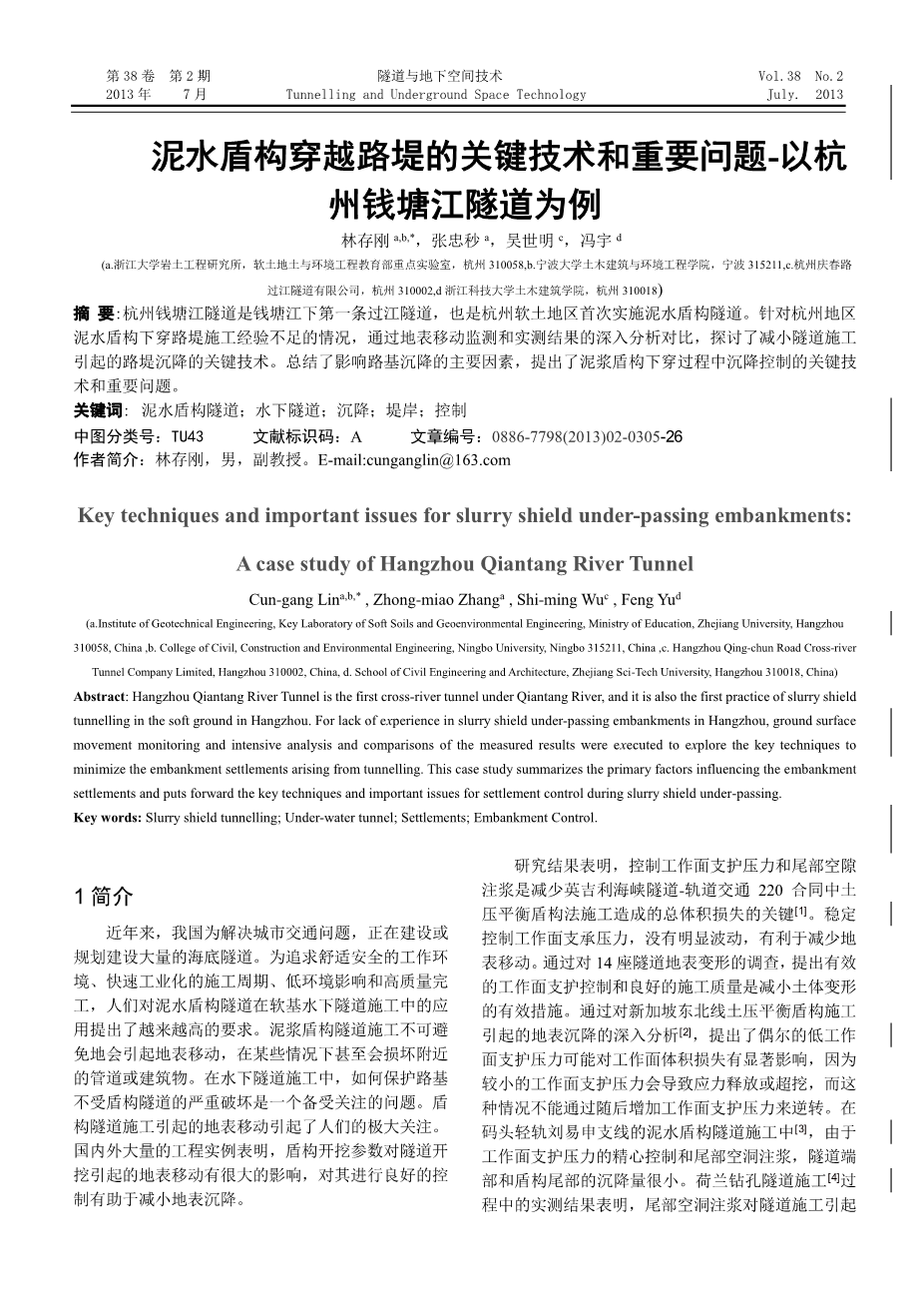泥水盾构穿越路堤的关键技术和重要问题-以杭 州钱塘江隧道为例外文翻译资料