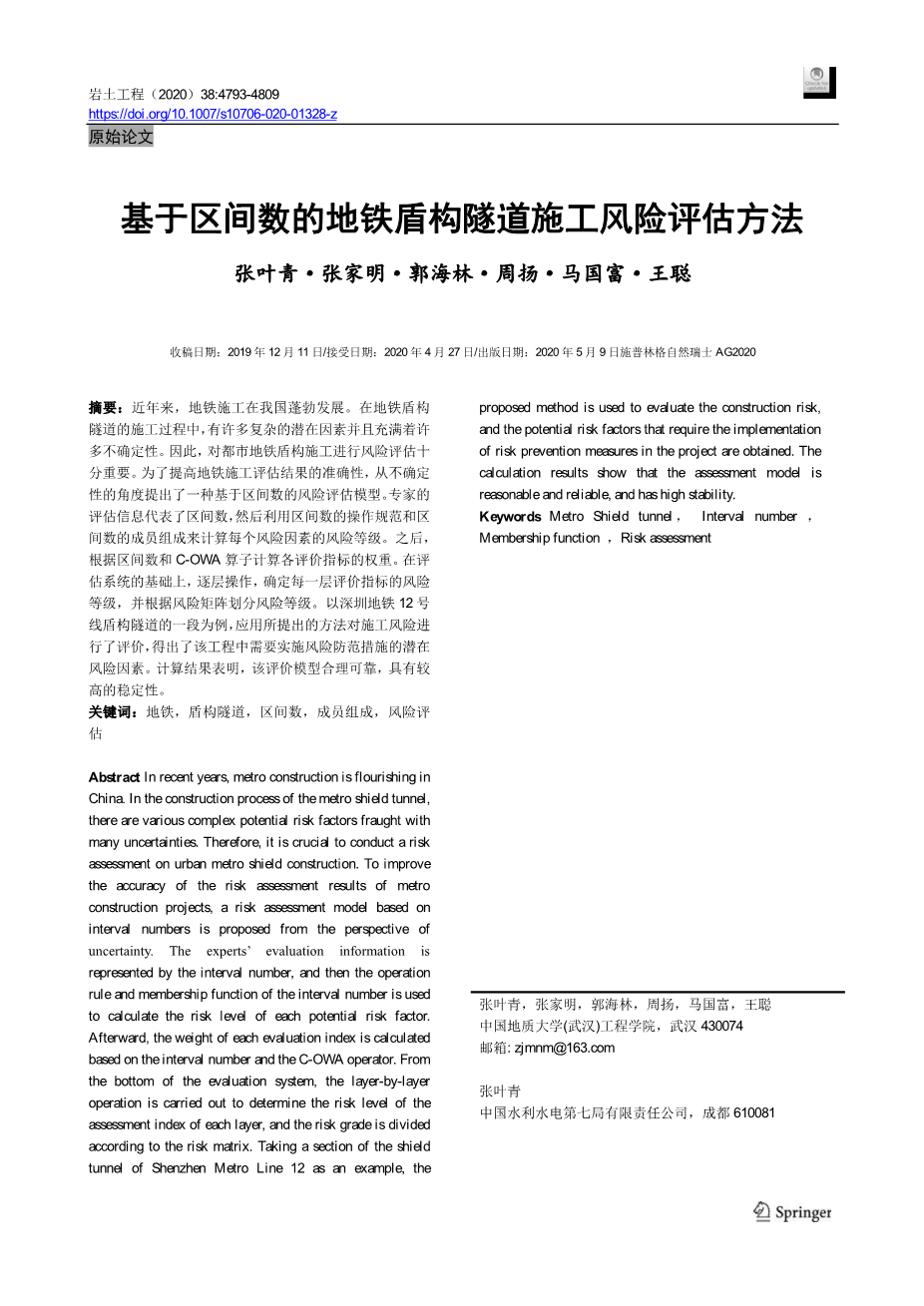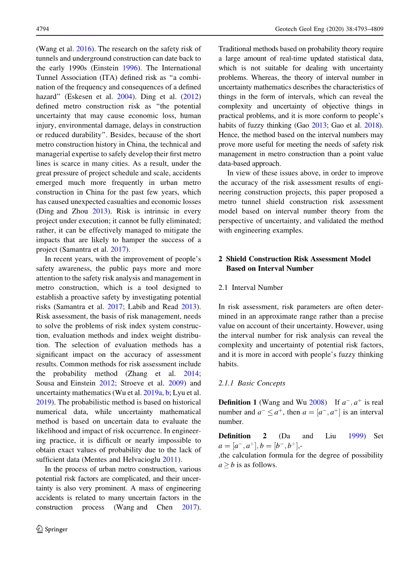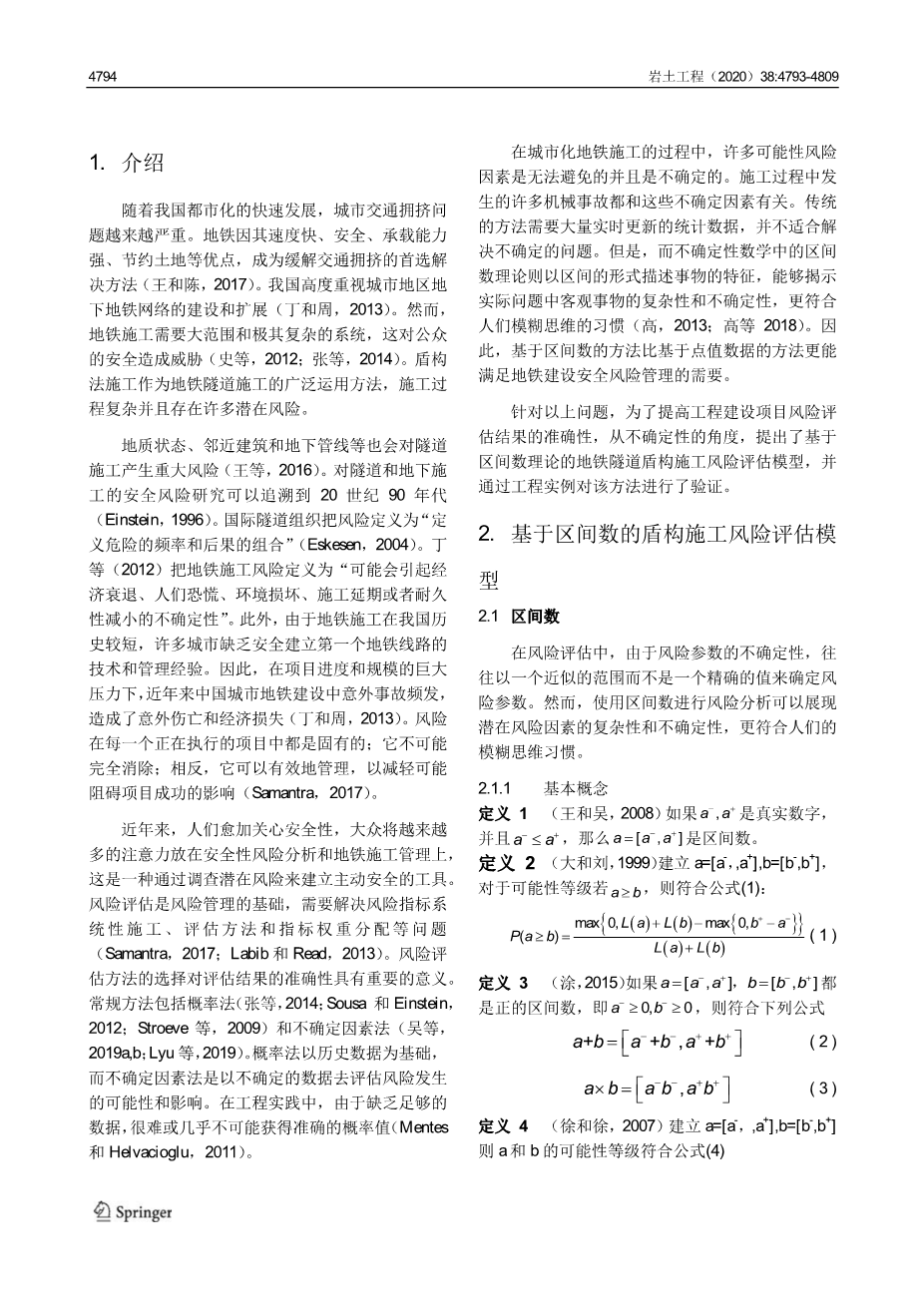 基于区间数的地铁盾构隧道施工风险评估方法外文翻译资料 2022-08-04 15:18:47 英语原文共 17 页,剩余内容已隐藏,支付完成后下载完整资料 英语译文共 18 页,剩余内容已隐藏,支付完成后下载完整资料 资料编号:[263991],资料为PDF文档或Word文档,PDF文档可免费转换为Word 原文和译文剩余内容已隐藏,您需要先支付 30元 才能查看原文和译文全部内容!立即支付 发小红书推广免费获取该资料资格。点击链接进入获取推广文案即可: Ai一键组稿 | 降AI率 | 降重复率 | 论文一键排版 PREVIOUS NEXT 您可能感兴趣的文章 第19章 地震作用下桩基设计,响应计算及模拟外文翻译资料 海水-结构-土相互作用对沉箱式岸墙抗震性能的影响外文翻译资料 粗粒土中TBM隧道诱导的沉降:以米兰新地铁5号 线为例外文翻译资料 外滩隧道施工采用的关键保护技术及对相邻建筑物的影响分析外文翻译资料 能量桩的设计,评估和优化外文翻译资料 对伊朗大不里士地铁车站新工法效果的研究外文翻译资料 挪威岩洞和隧道的规划与利用外文翻译资料 基于区间数的地铁盾构隧道施工风险评估方法外文翻译资料 基坑宽度对地面荷载作用下支护结构抗倾覆稳定性的影响外文翻译资料 上海软土地基浅埋管道对邻近深基坑的响应外文翻译资料