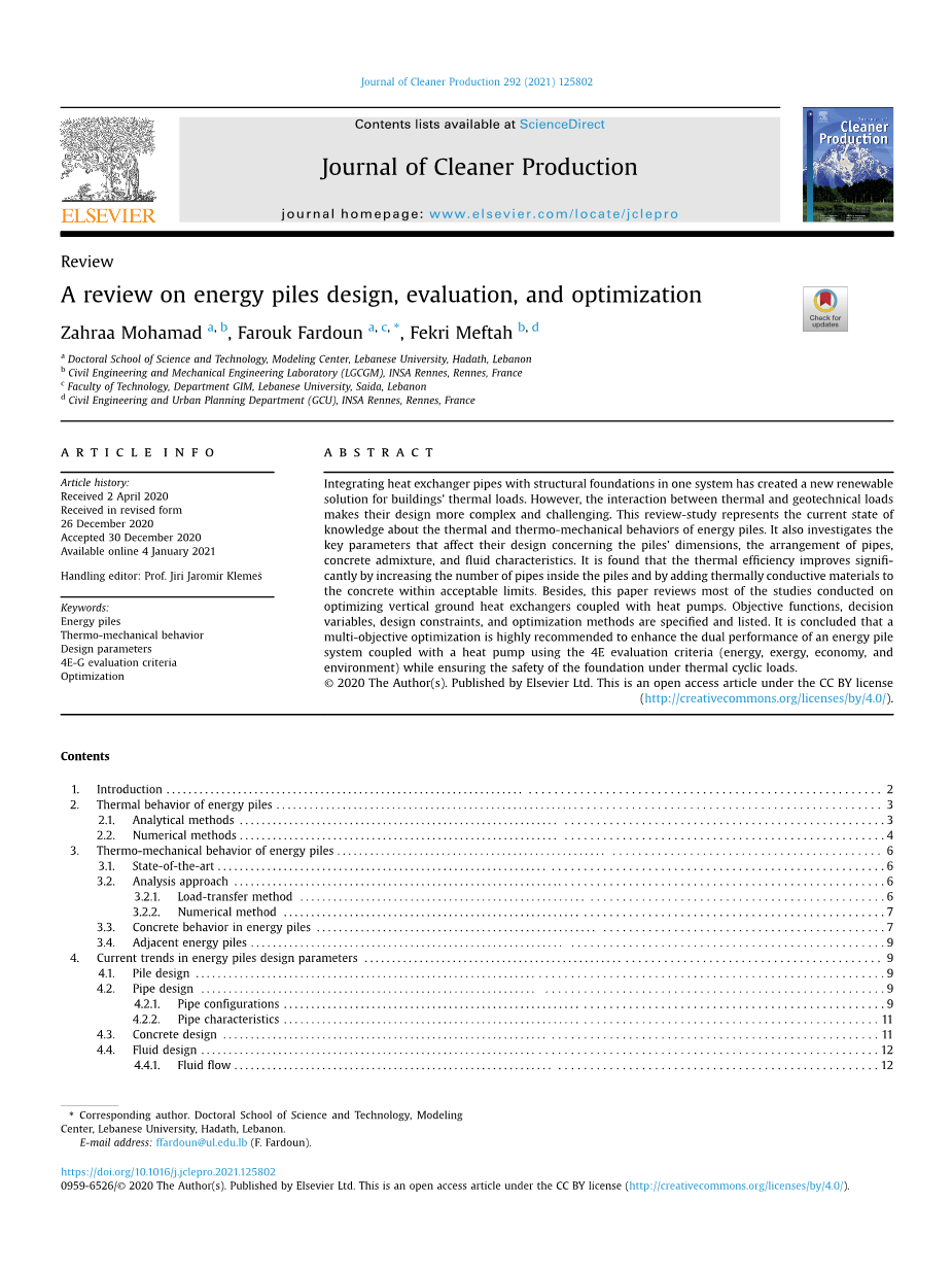 建筑物的能源消耗已成为一个相关的国际问题,并且已开发出各种设计策略在许多国家提高节能效果。如今,建筑物承担着约40%的总能耗和超过30%的温室气体排放(Sbci,2009年),已将全球关注的焦点转移到了所谓的“近零能耗建筑物”上(NZEB)。NZEB的设计目的是建造能耗更低且碳排放量低的建筑物。能源地质结构的发展为实现这一目标做出了贡献,因为将浅层地热能应用于地质结构中以进行建筑物的空间冷却和供暖。这项环保技术可应用于所有类型的土壤嵌入式结构,例如隔板墙,隧道,浅基础和桩(Adam和Markiewicz,2009年)。在过去的几年中,许多国家实施了越来越多的能源地质结构项目,这些项目在全球范围内累计减少了二氧化碳的使用量(图1-1)。世界各地各种类型的能源地质构造都有一些应用(维也纳(奥地利)的Laizer隧道,英国牛津的Keble学院,瑞士苏黎世机场的Dock Midfield航站楼以及中国的无锡国联大厦)( Adam和Markiewicz,2009; LalouiDi Donna,2013)。在所有这些类型中,能量堆仍然是地热交换过程中最常见的应用。它利用15m至50m深度以下的地下温度的相对稳定性来从地面吸收热量或从地面吸收热量。传热是通过沿地热交换管(GHE)沿着加固笼安装的能量堆中进行的,传热流体(HTF)在该处循环并与周围环境进行热交换。尽管这项技术迅速普及,尤其是在英国和奥地利,但由于热力和岩土设计之间的相互作用,能量桩的安装仍面临相当大的挑战(Laloui和Di Donna,2011)。已经进行或正在进行许多研究以检查能量堆的性能。它们中的大多数基于能量性能,但也已发表了许多最新研究,以通过原位实验,实验室测试和数值分析来了解其热机械行为。同时,一些作者对这一领域的研究进行了综述(Bourne-Webb等人,2016,2019; Fadejev等人,2017; Zagorscak和Thomas,2016; de Moel等人,2010; Loveridge和Powrie,2013; Raouf等人,2015; Faizal等人,2016; Noorollahi等人,2018; Batini等人,2015; Sani等人,2019)。但是,它们没有解决热机械相互作用下能量堆的优化方面。本文对所有能量堆的功能进行了全面的回顾:评估,设计和优化。它解释了能量堆的复杂性能,扩展了有关其评估标准和设计参数的知识,并提供了设计建议。考虑到热,经济,环境和机械方面的考虑,它还尝试开发一种优化能量堆设计的方法。
