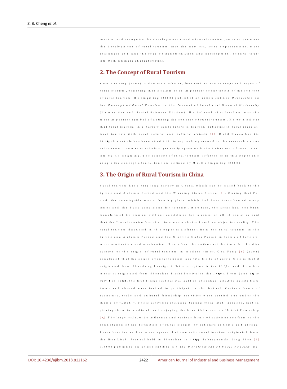 [2] 何敬明、李立华.《乡村旅游的概念》[J].西南师范大学学报(人文社会科学版),2002年(5):127-128页。