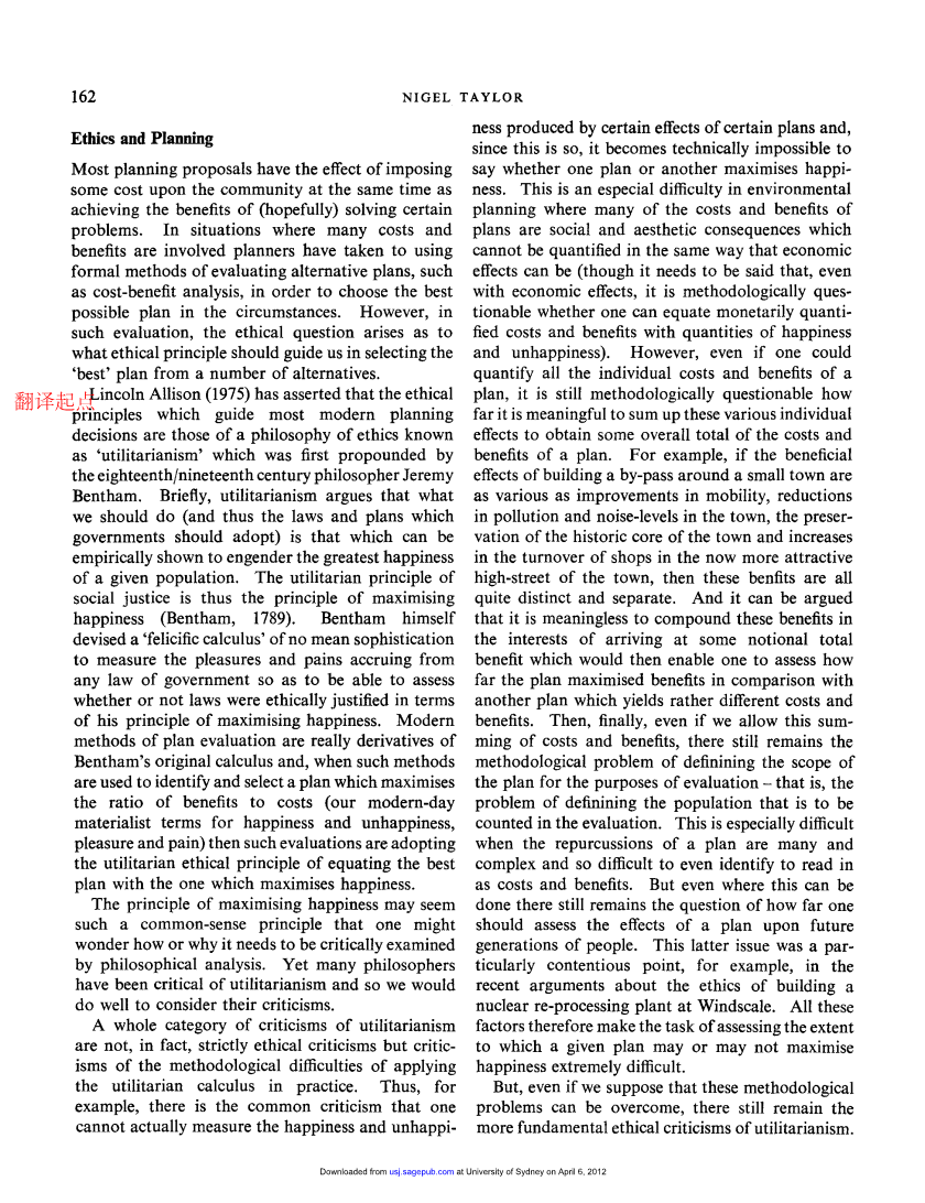 principles which guide most modern planning decisions are those of a philosophy of ethics known as lsquo;utilitarianism rsquo; which was first propounded by