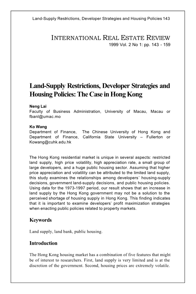 城市土地供应政策与房地产市场调控关系研究外文翻译资料 2022-05-02 22:48:36 英语原文共 19 页,剩余内容已隐藏,支付完成后下载完整资料 英语译文共 12 页,剩余内容已隐藏,支付完成后下载完整资料资料编号:[464317],资料为PDF文档或Word文档,PDF文档可免费转换为Word 原文和译文剩余内容已隐藏,您需要先支付 30元 才能查看原文和译文全部内容!立即支付 发小红书推广免费获取该资料资格。点击链接进入获取推广文案即可: Ai一键组稿 | 降AI率 | 降重复率 | 论文一键排版 PREVIOUS NEXT 您可能感兴趣的文章 质量和成本控制:医疗保险及其他外文翻译资料 估算废物处理厂建设成本的技术外文翻译资料 新建项目建筑废物上游估算方法外文翻译资料 基于安全防范的旧住宅小区电梯安装升级意愿路径研究外文翻译资料 埃塞俄比亚项目的规划和融资外文翻译资料 物业管理外文翻译资料 工程造价管理的阶段外文翻译资料 建设项目风险管理过程有效实施的关键成功因素模型外文翻译资料 项目管理成本、时间和质量,两个最佳猜测和一个现象,是接受其他成功标准的时间了外文翻译资料 项目成本控制:它的工作方式外文翻译资料