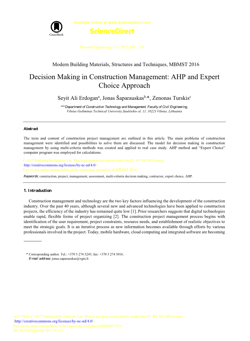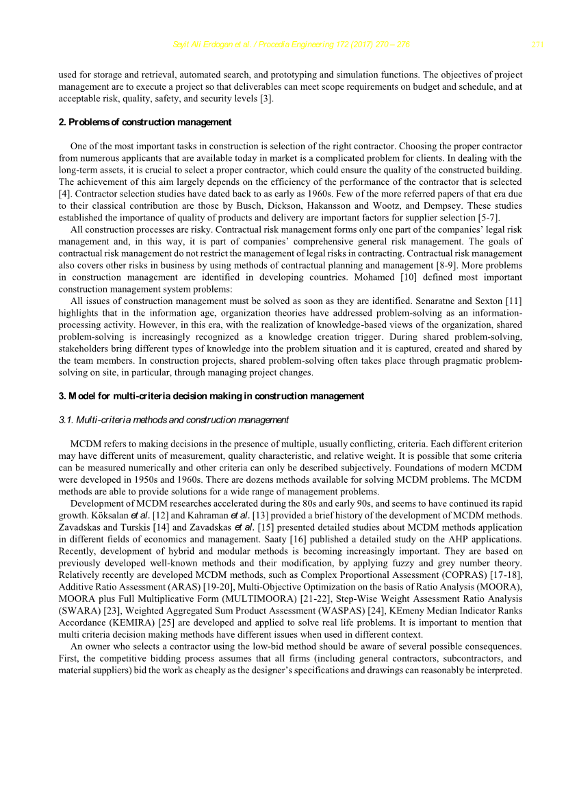 本文概述了建设项目管理的一些概念和内容。讨论了施工管理的主要问题,并讨论了解决这些问题的可能性。建立了使用多准则方法进行施工管理决策的模型,并将其应用到实际案例研究中。本文采用 AHP 方法和“ 专家选择法 ” 的计算机程序进行计算。