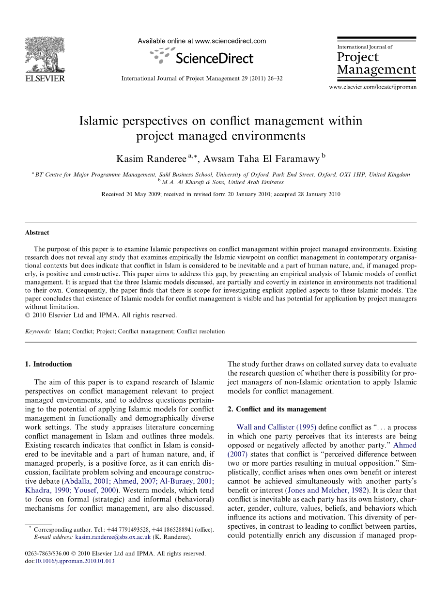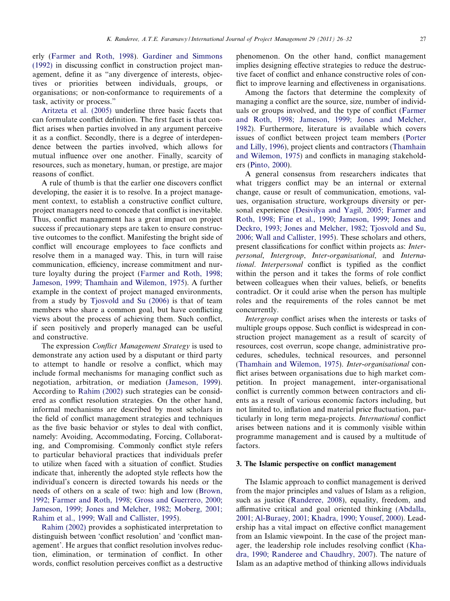 关键词:伊斯兰教;冲突;项目;冲突管理;解决冲突