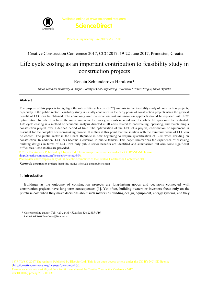 摘要:本文的目的是强调生命周期成本(LCC)分析在建筑项目可行性研究中的作用,特别是在公共部门。可行性研究通常在建设项目的早期阶段进行,同时可以获得LCC的最大利益。常用的建筑成本最小化方法应该被LCC优化代替。为了实现最大的资金效益,必须评估在整个寿命期内产生的所有成本。生命周期成本核算是一种经济分析方法,针对于在规定时间内建造,运营和维护建筑项目相关的所有成本。项目、建筑或设备的LCC优化对于复杂的决策过程至关重要。此时,可以选择具有最小LCC值的解。捷克共和国的公共部门现在开始要求在决定建设时对LCC进行量化。此外,LCC已成为公开招标的标准。本文总结了从LCC角度评估建筑设计的经验。不仅确定和总结了公共部门的利益,而且还存在一些重大困难,相应案例也被列举。
