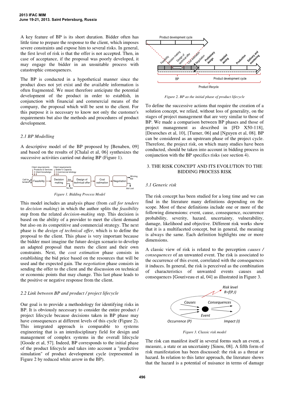 这项工作的目的是整合投标流程,风险管理和产品生命周期(和项目)的概念,以提出 BP 中的风险管理方法,该方法依赖于适用于不同 BP 的通用映射。因此,投标人将能够提出满足客户期望并且与其自身需求和业务约束相一致的投标。此外,它还可以通过向客户展示公司的专有技术和已实施的风险管理策略来使客户放心。