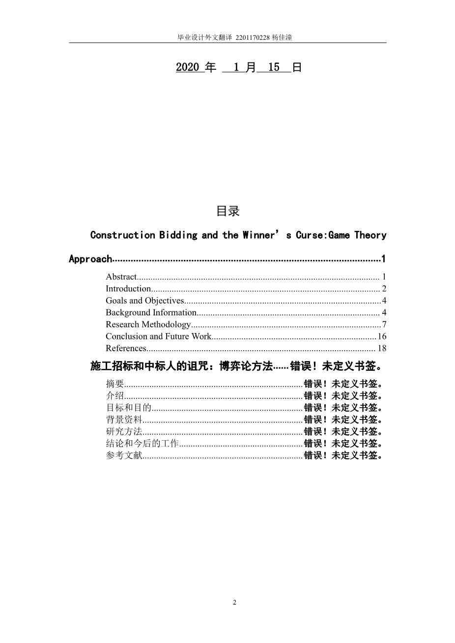 Construction Bidding and the Winnerrsquo;s Curse:Game Theory Approach 1