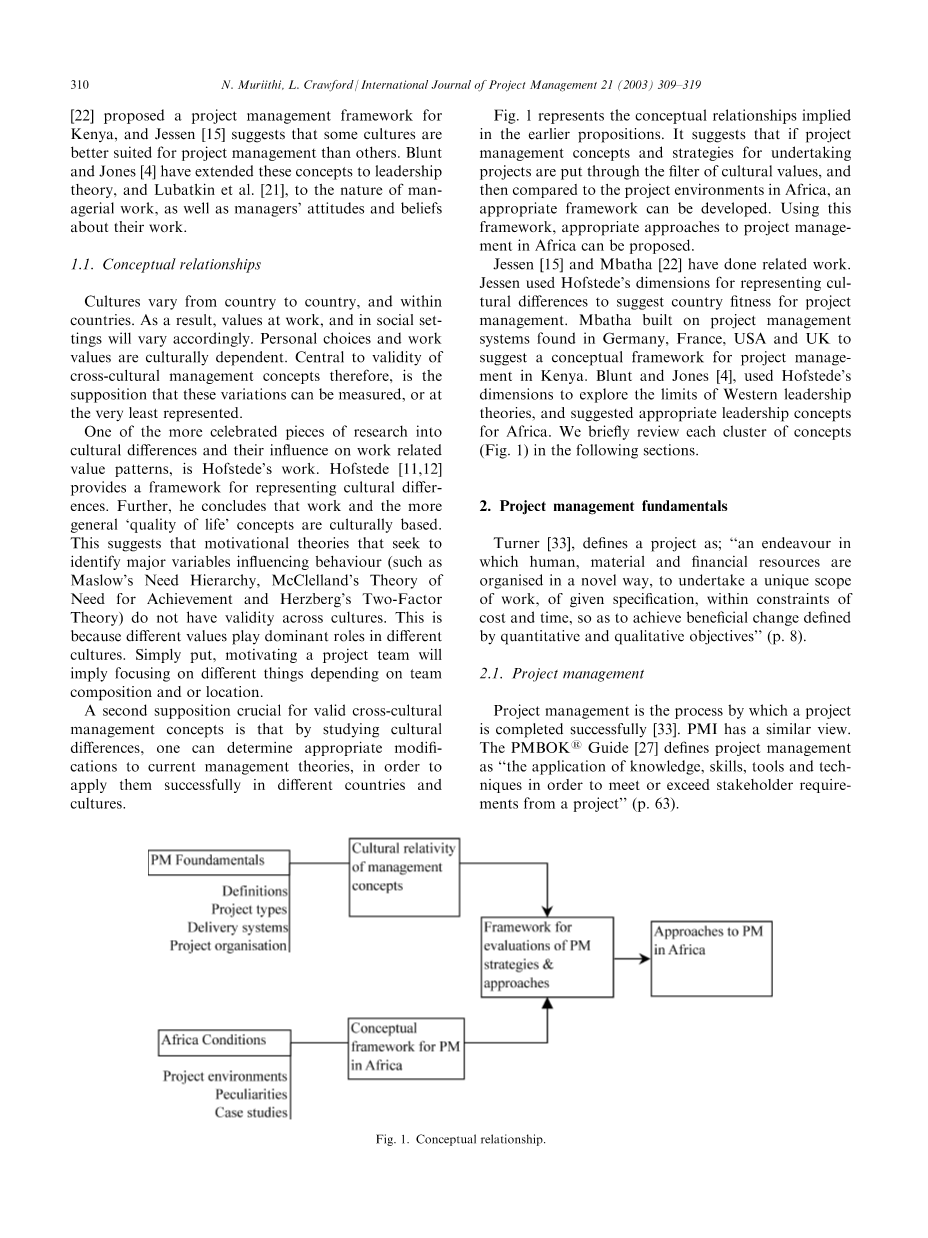 姆巴塔[22]为肯尼亚提出了一个项目管理框架,Jessen[15]认为有些文化比其他文化更适合项目管理。 布朗特和琼斯[4]将这些概念扩展到领导理论,卢巴特金等人。[21]关于管理工作的性质以及管理人员对其工作的态度和信念。