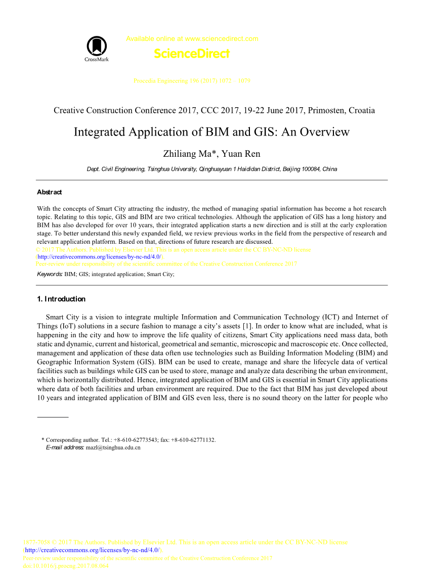 2017年创新建设大会科学委员会职责下的同行评审关键词:BIM;GIS;集成的应用程序;智能城市;
