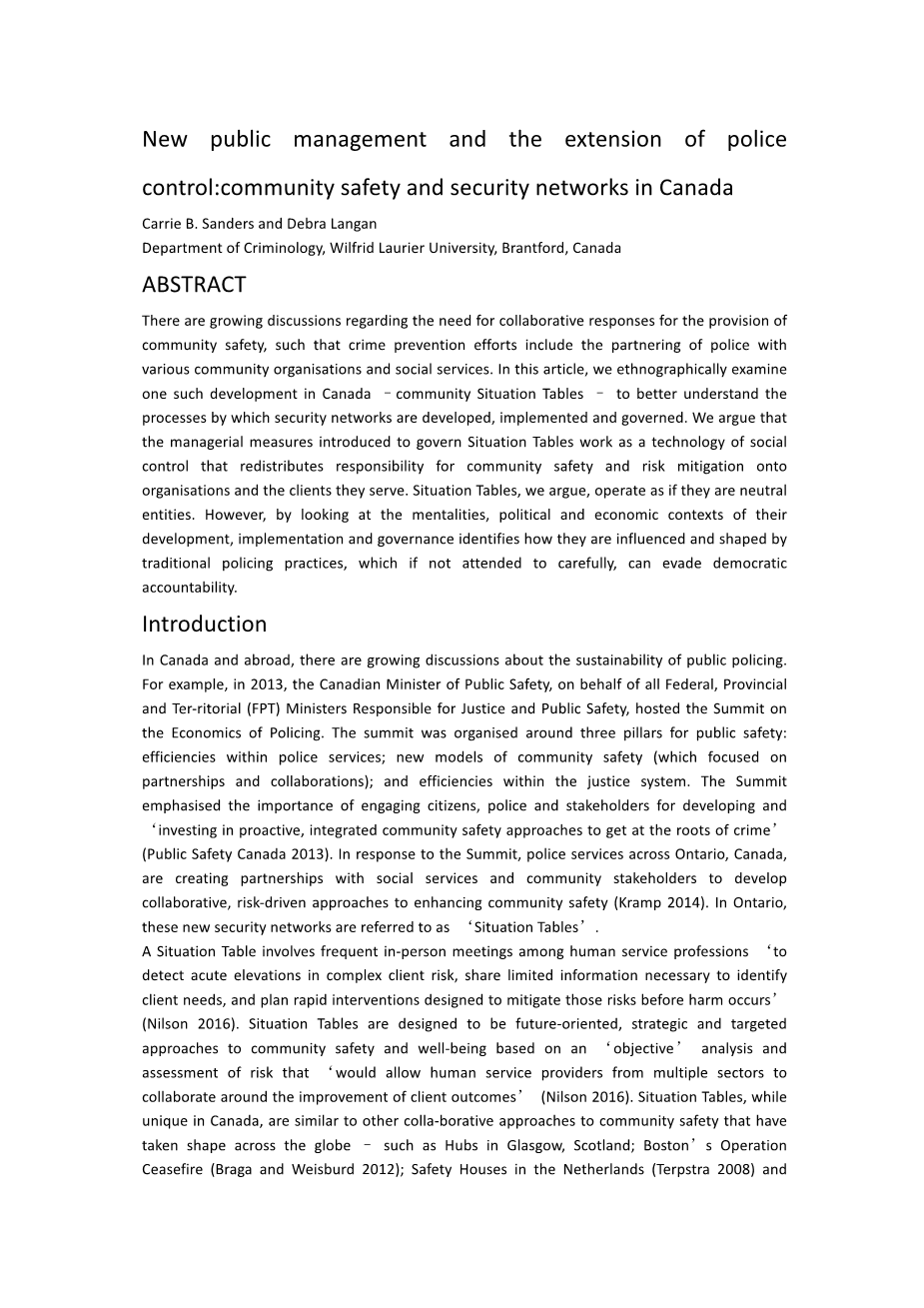 新的公共管理和警察控制的延伸:加拿大的社区安全和安全网络